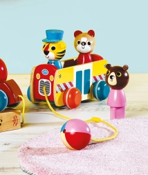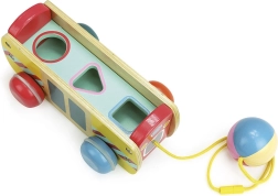 Acest autobuz de tras este fabricat din lemn de calitate și oferă nu doar distracție, dar și provocări pentru micii gânditori. Cu culori vii și animăluțe care pot fi pețișor și scoase, încurajează dezvoltarea copiilor în mai multe domenii: