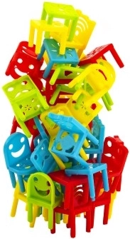 Scaunele Nesitite sunt un joc de echilibru excelent pentru copii peste 5 ani, care oferă diverse variante de joc. Jocul conține 32 de scaune din plastic și 8 mese pentru mai multe opțiuni de joc. Jocul cu o singură mână sau crearea propriilor reguli aduce provocări și distracție suplimentară:
