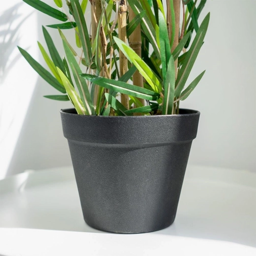 Acest bambus artificial în ghiveci se remarcă prin structura naturală a frunzelor și frunzișul bogat, ce oferă un aspect foarte veridic. Datorită materialelor de calitate, își păstrează forma și culoarea, oferind un accent verde elegant pentru orice interior, fără udare și fără căderea frunzelor.