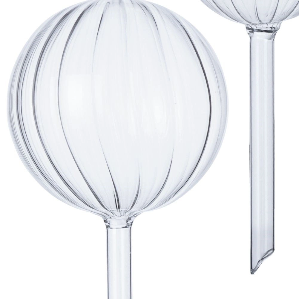Setul de două bile de udare din sticlă este ideal pentru o irigare regulată și delicată a plantelor de interior și de balcon. Este suficient să le umpli cu apă și să introduci gâtul în substrat – bilele vor doza automat apa exact în funcție de nevoile plantei și vor menține solul uniform umed.