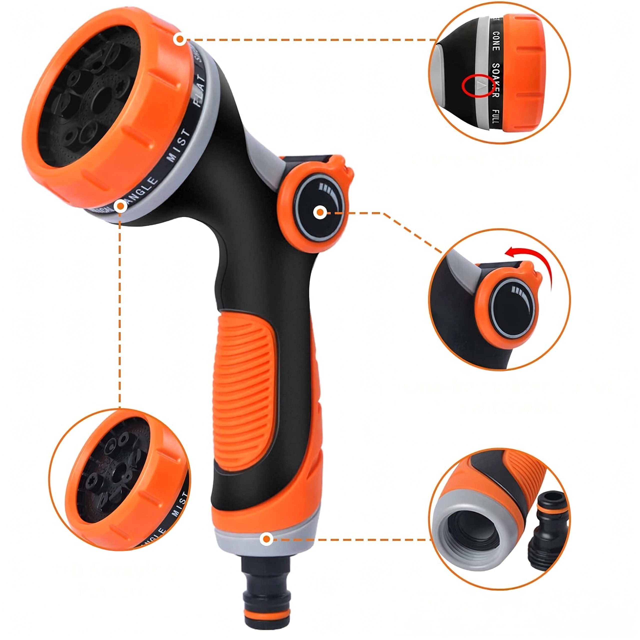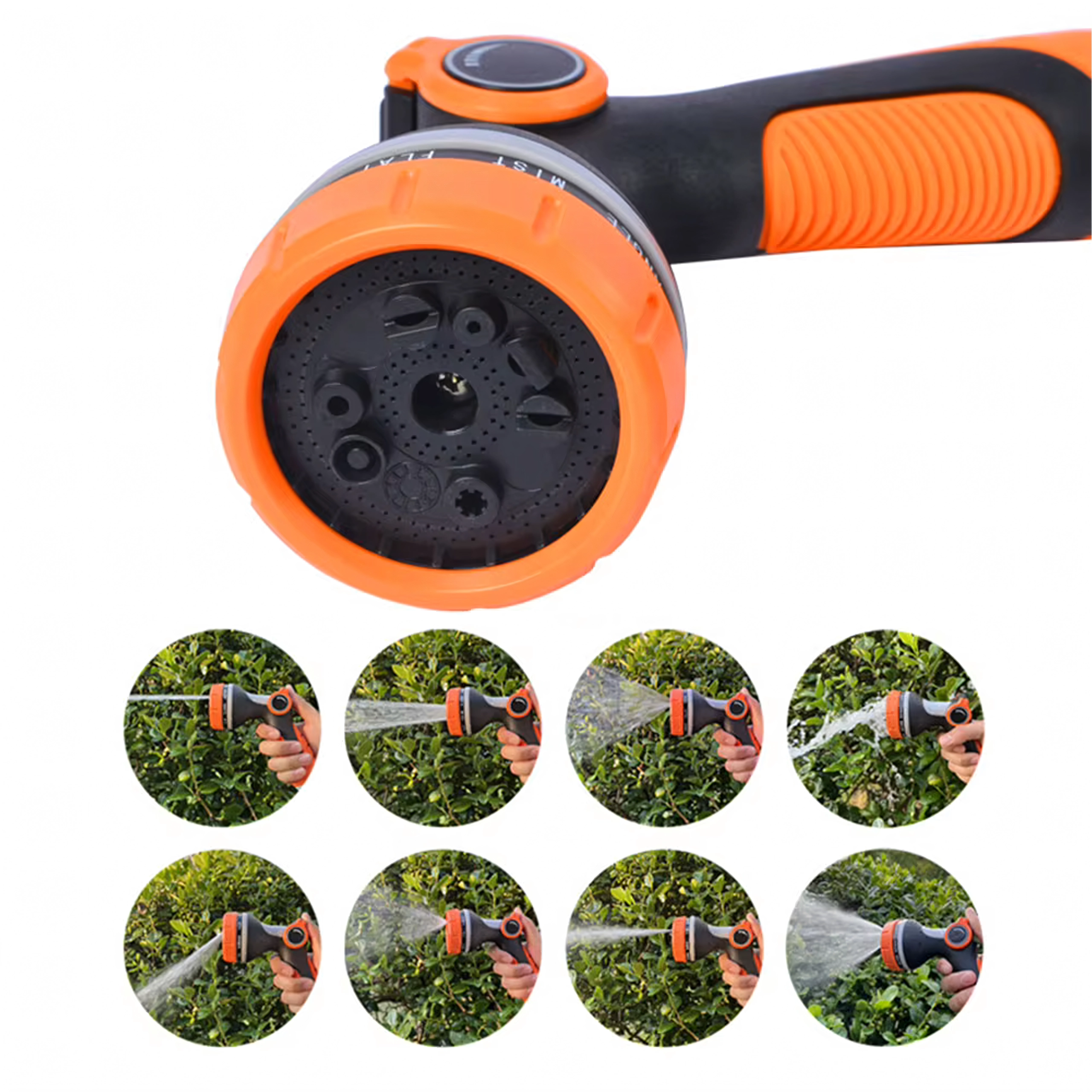 Selector rotativ cu marcaje clare (de ex. Full, Center, Vertical, Mist, Jet) care permite comutarea rapidă de la udare delicată la jet intens pentru curățare.