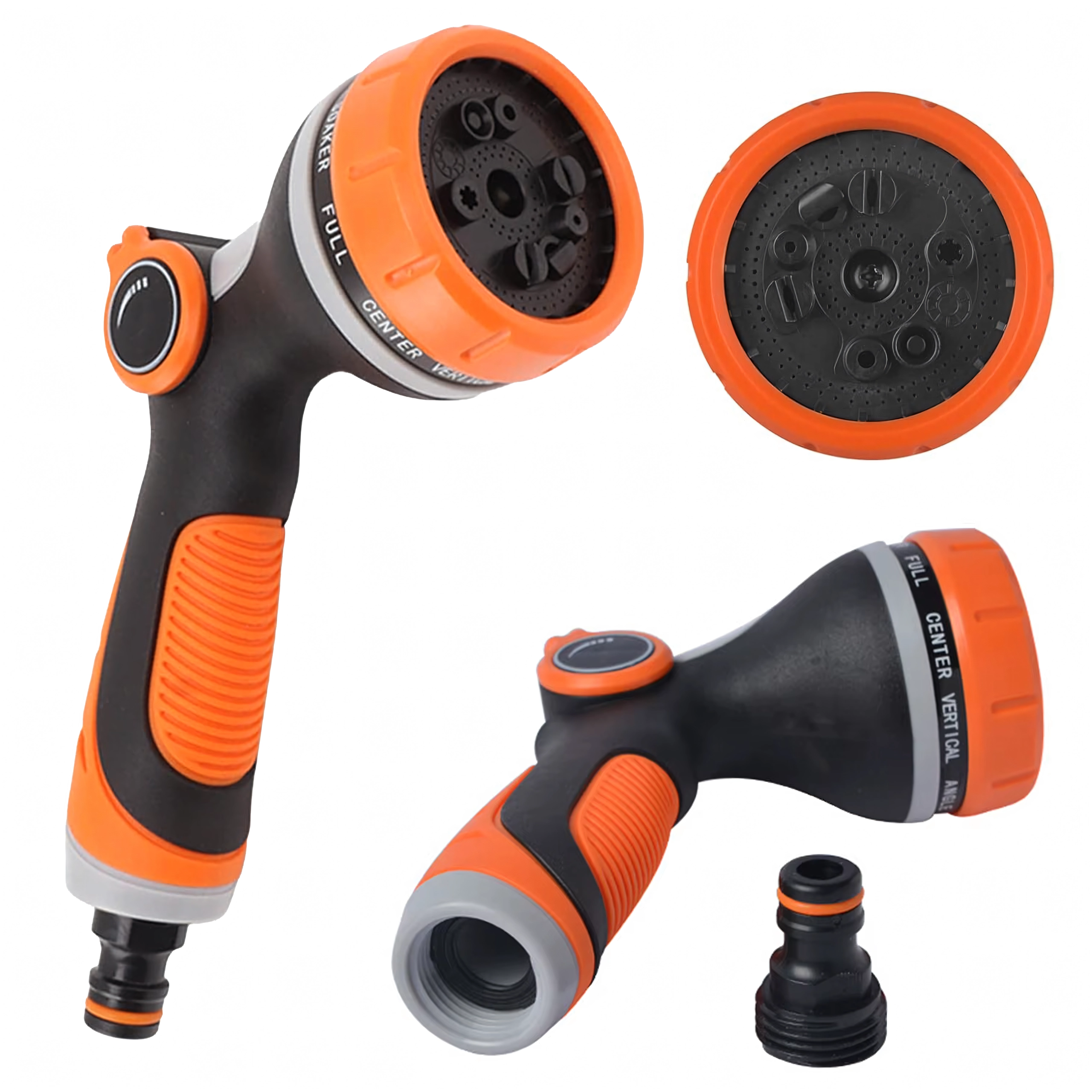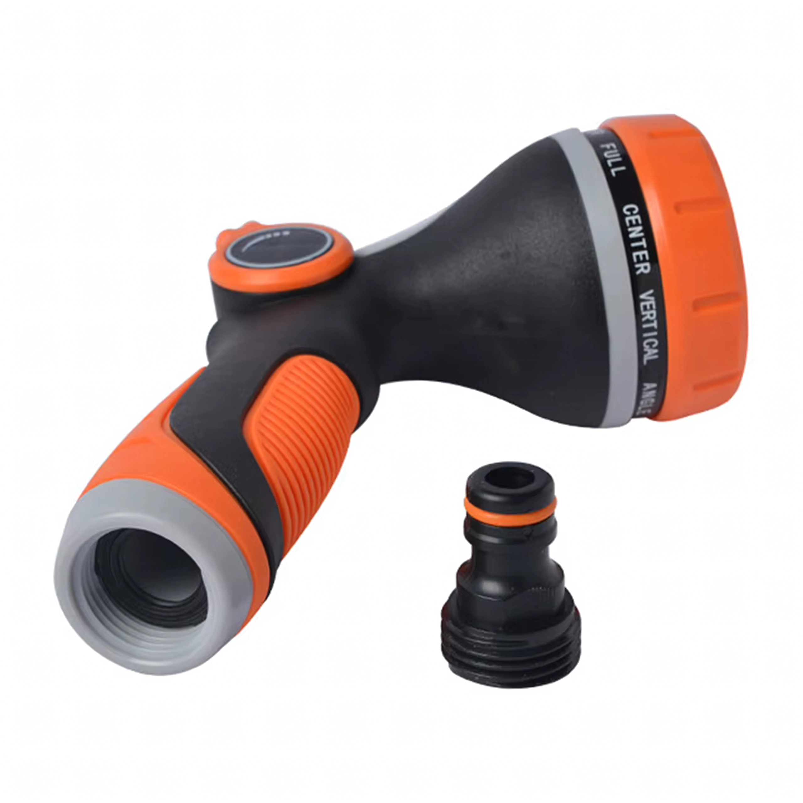 Poți alege dintre mai multe moduri de pulverizare (de ex. mist/ceață, full/plin, center/central, vertical/vertical, cone/conic, jet/jet), astfel încât uzi delicat florile, clătești rapid terasa sau speli bicicleta și mașina. Capul este compatibil cu cupla rapidă standard, astfel încât îl conectezi ușor la majoritatea furtunurilor.