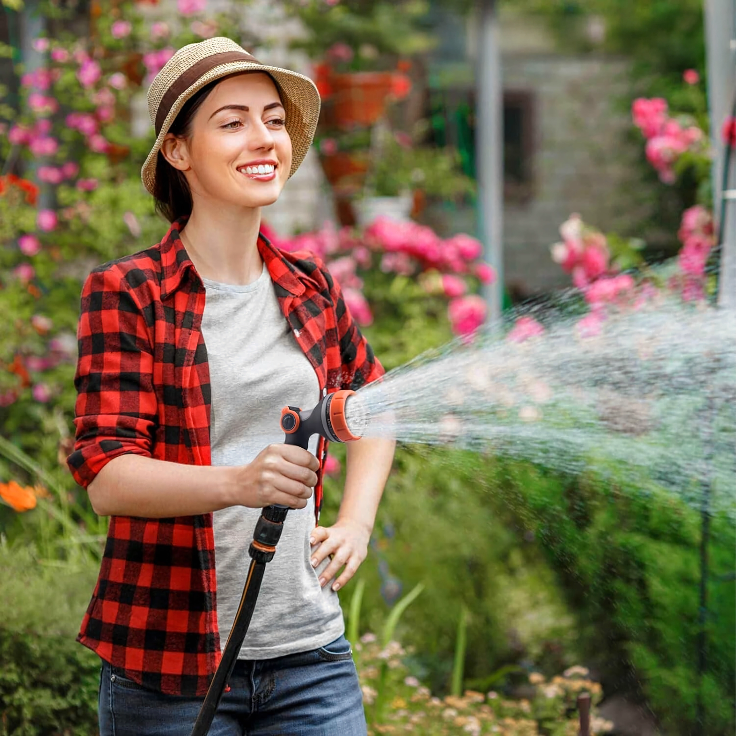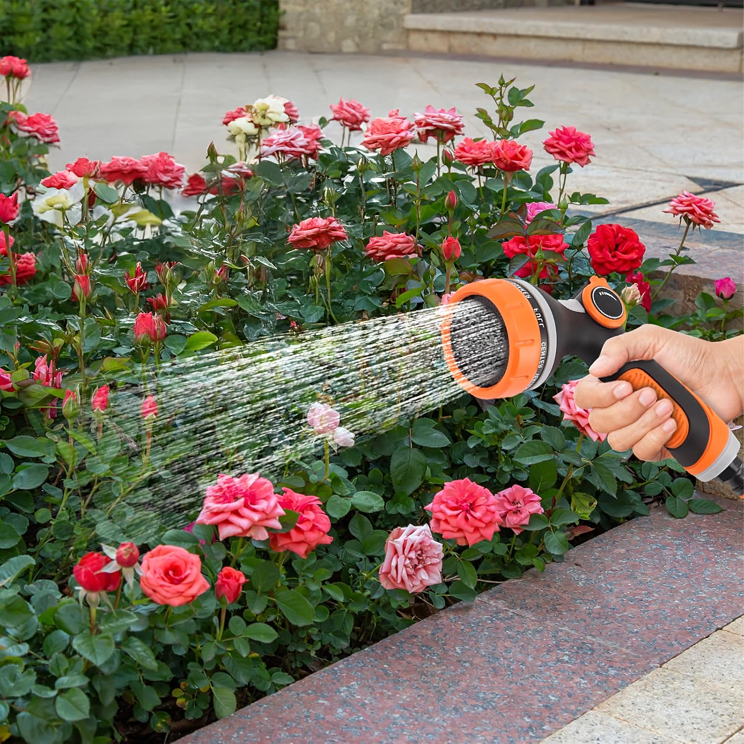 Acest duș de grădină multifuncțional, cu selecție rotativă a modurilor, oferă setări precise ale jetului de apă pentru toate sarcinile din jurul casei. Datorită mânerului ergonomic antiderapant se ține confortabil chiar și la lucru îndelungat, iar regulatorul de debit pentru degetul mare permite ajustare lină fără a apăsa pe trăgaci.