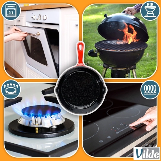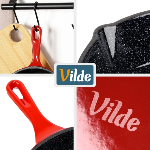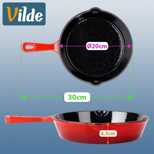 Utilizarea universală în bucătărie, la grătar și chiar deasupra focului deschis face din această tigaie un partener grozav acasă și în călătorii. Construcția solidă și designul atemporal în culoare roșie subliniază calitatea mărcii VILDE din linia CAST ENAMEL.
