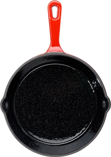 - fontă cu suprafață emailată (interior negru, exterior roșu)