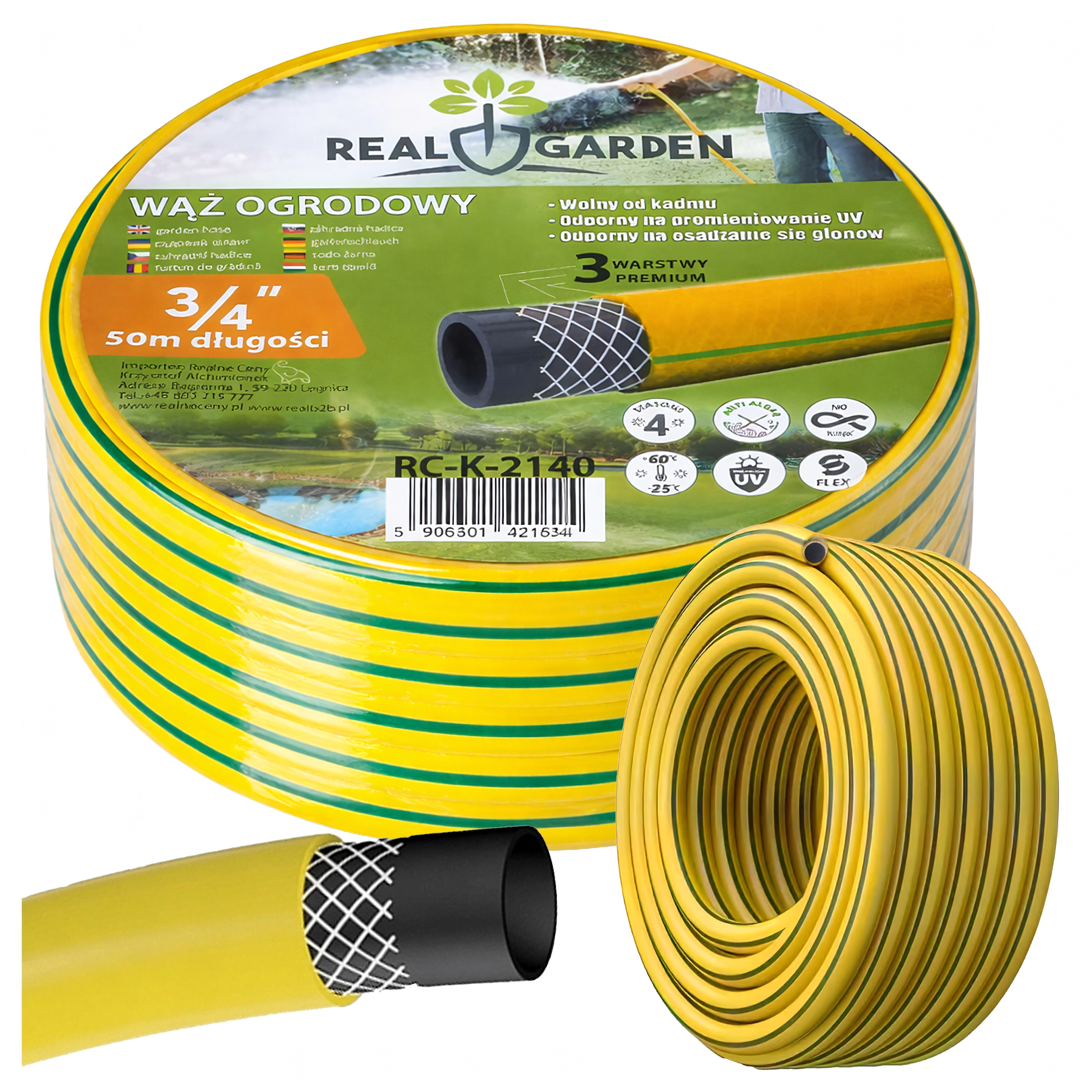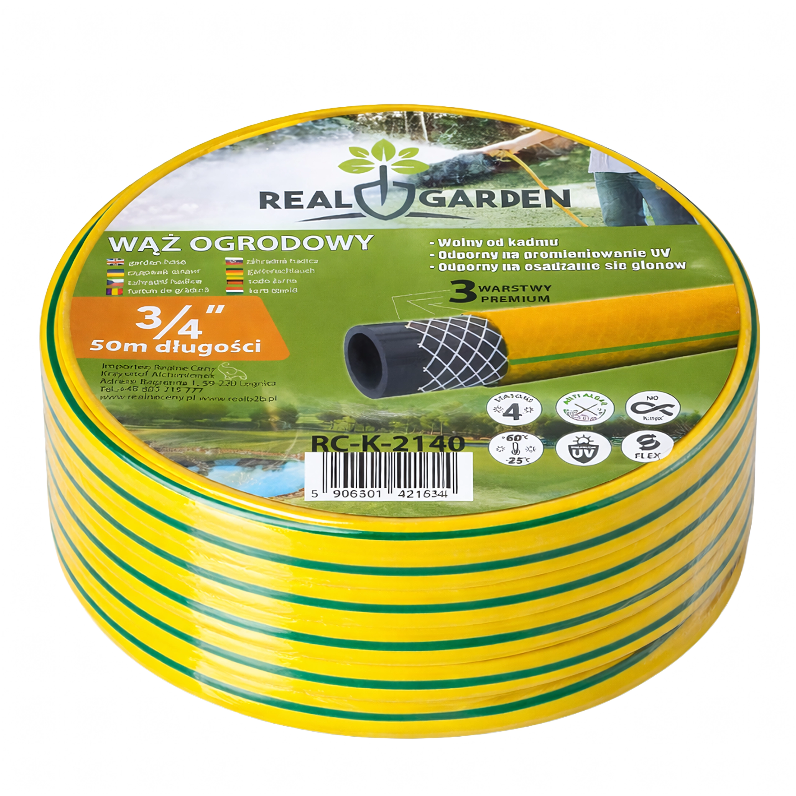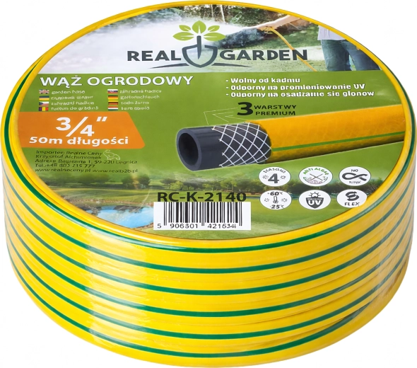 Lungimea de 30 m și diametrul de 3/4" asigură suficientă apă chiar și în zonele mai îndepărtate ale grădinii – ideal pentru peluze, straturi și spălare.