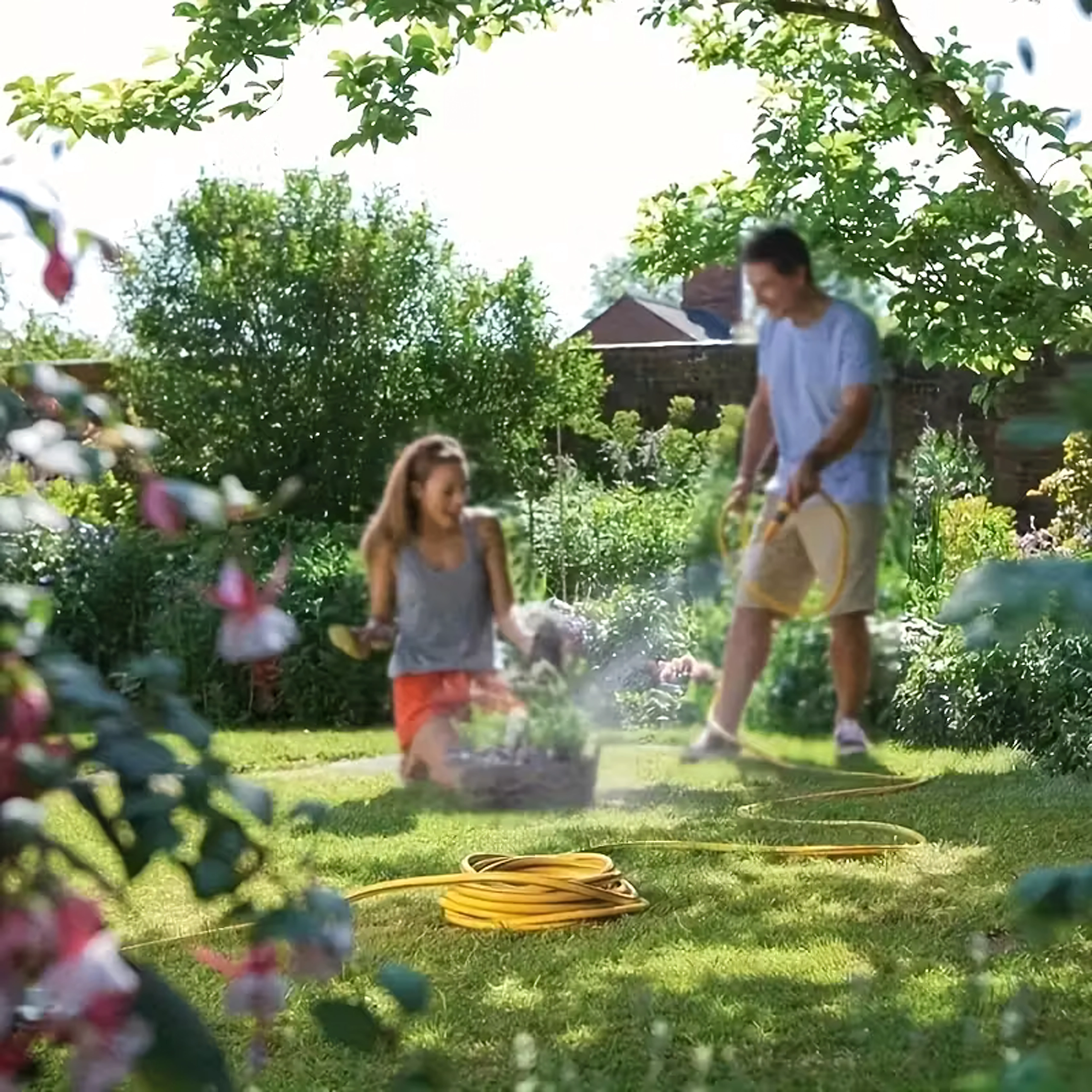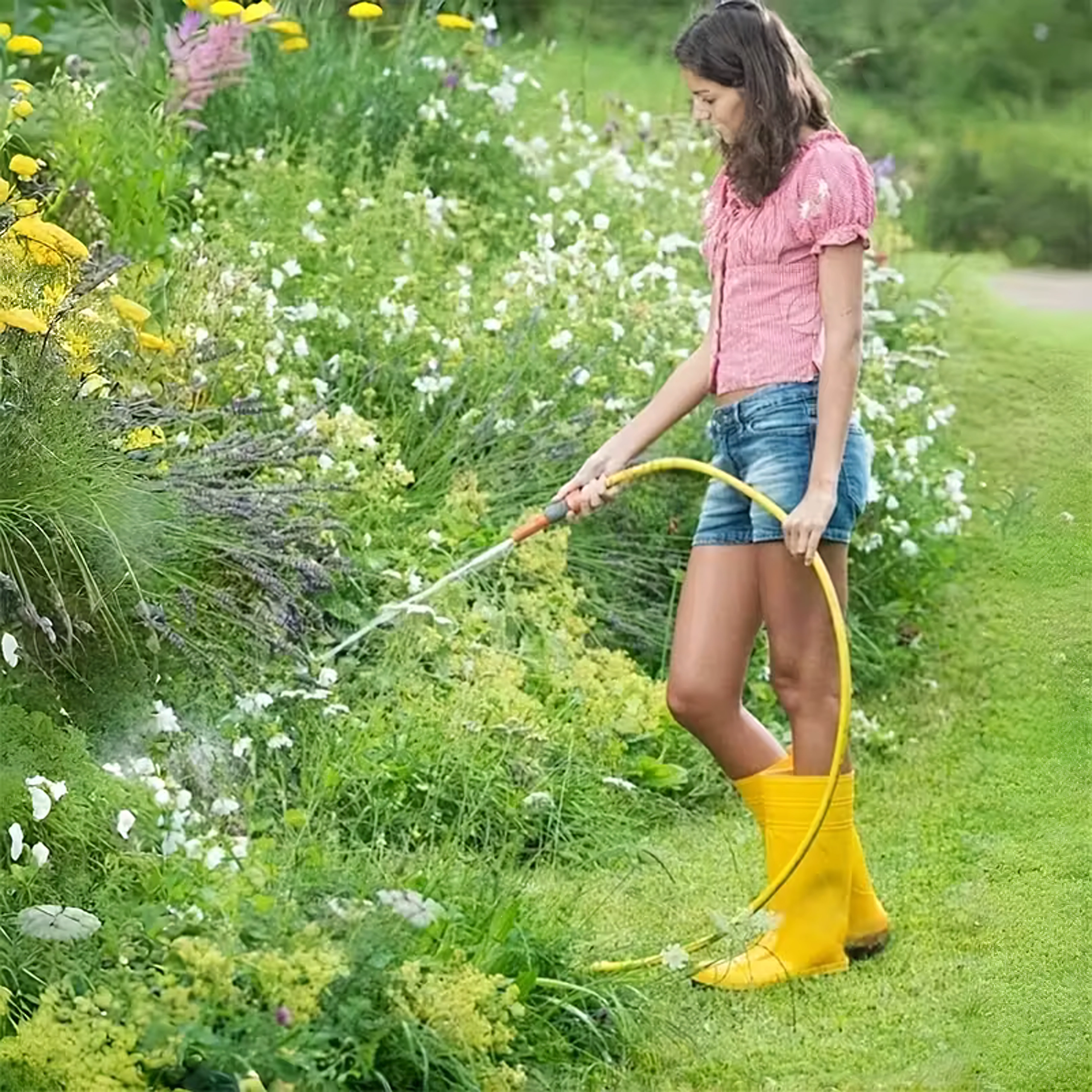 Udarea florilor și arbuștilor, clătirea aleilor și spălarea mașinii – un singur furtun acoperă toate lucrările exterioare uzuale.