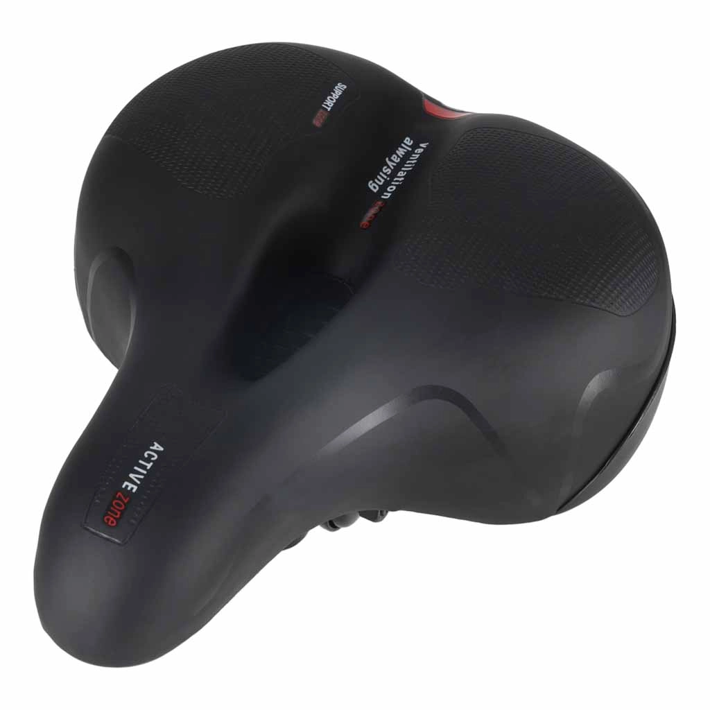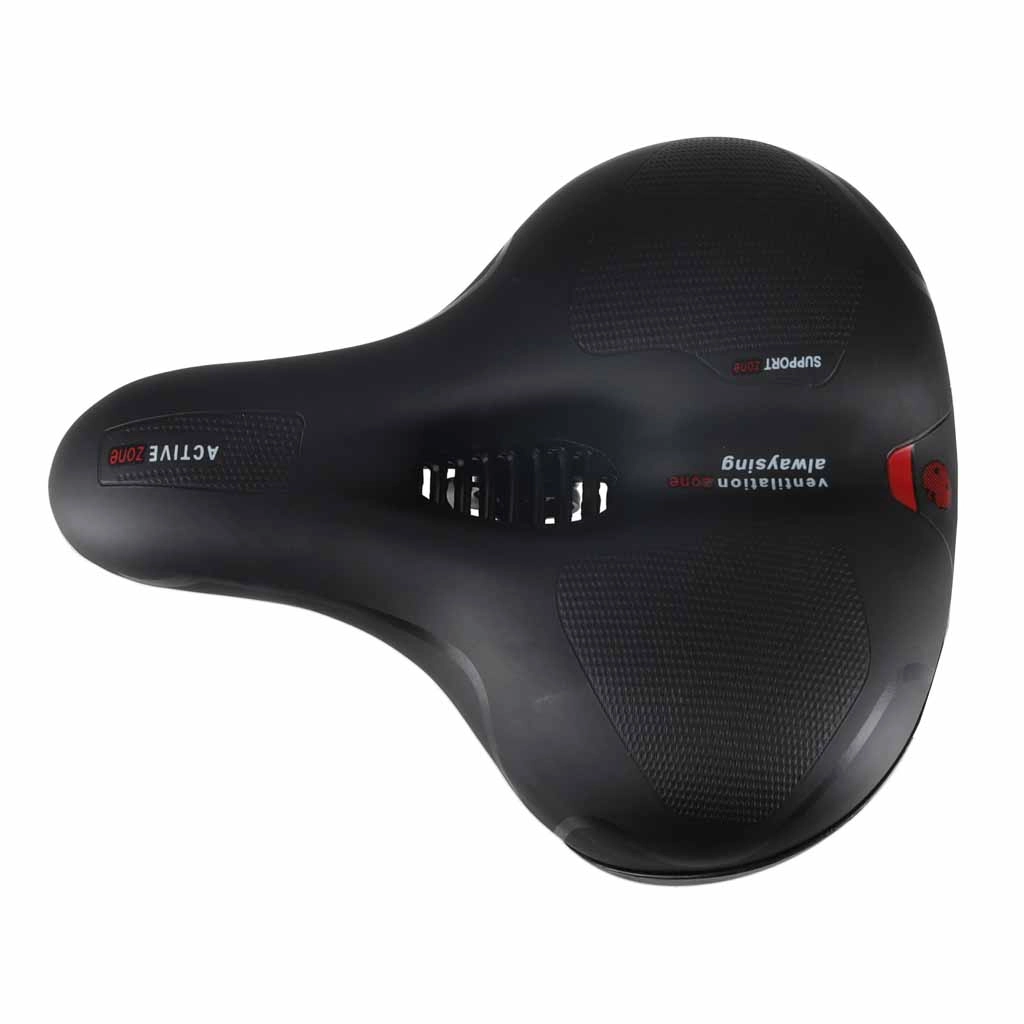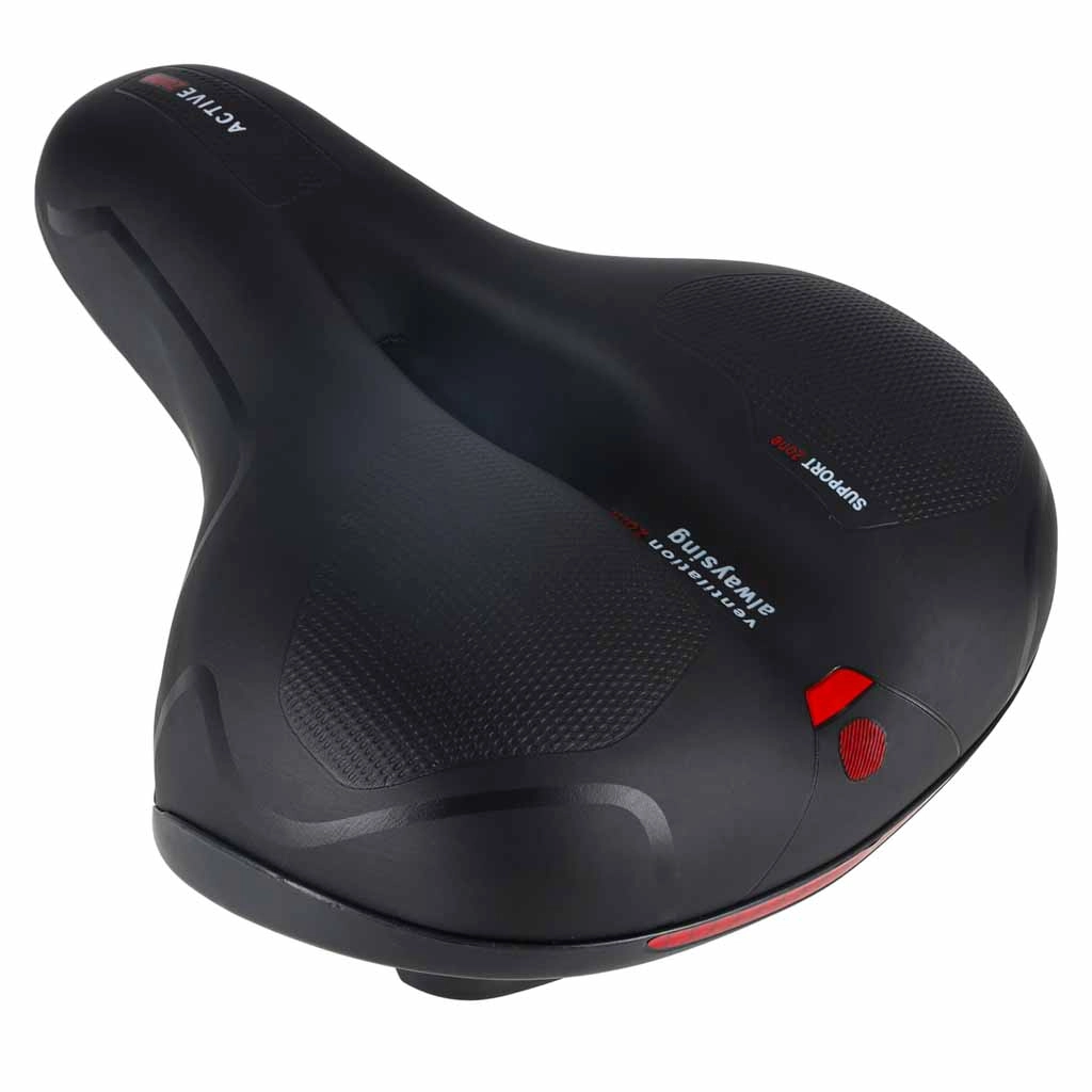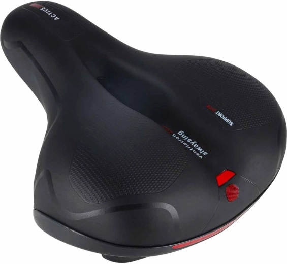 Șa de bicicletă confortabilă pentru mers urban și trekking, cu formă ergonomică lată, umplutură din spumă elastică și amortizare cu arcuri duble pentru o rulare lină fără puncte de presiune. Datorită canalului central de ventilație, șaua rămâne aerisită, suprafața impermeabilă din piele PU rezistă la ploaie, iar reflectorul posterior integrat crește vizibilitatea pe timp de noapte.