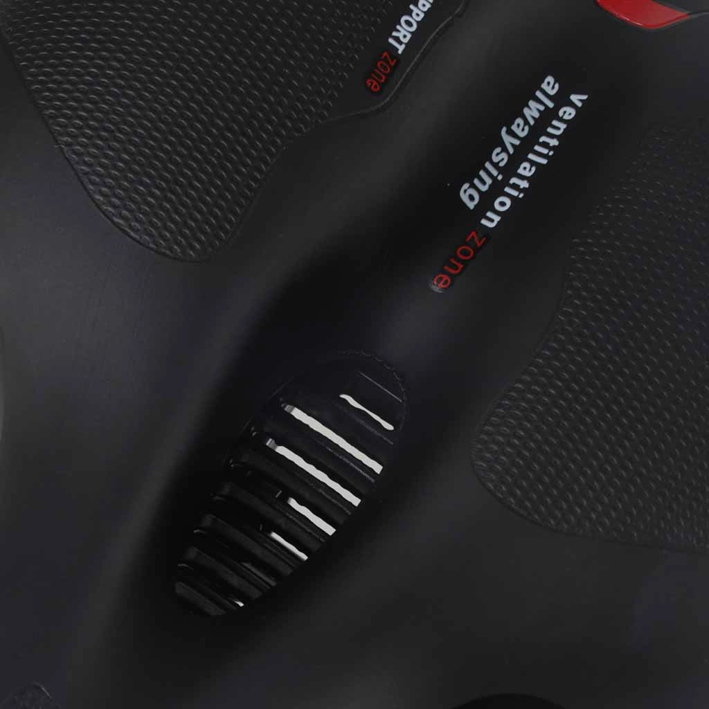 Canalul central de ventilație diminuează presiunea în zonele sensibile și îmbunătățește fluxul de aer pentru un confort sporit la ture mai lungi.