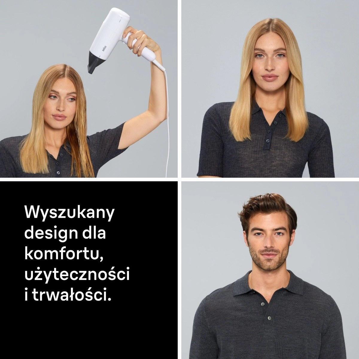 Motorul puternic reduce timpul de uscare și ajută la obținerea unui rezultat neted, fără electrizare.