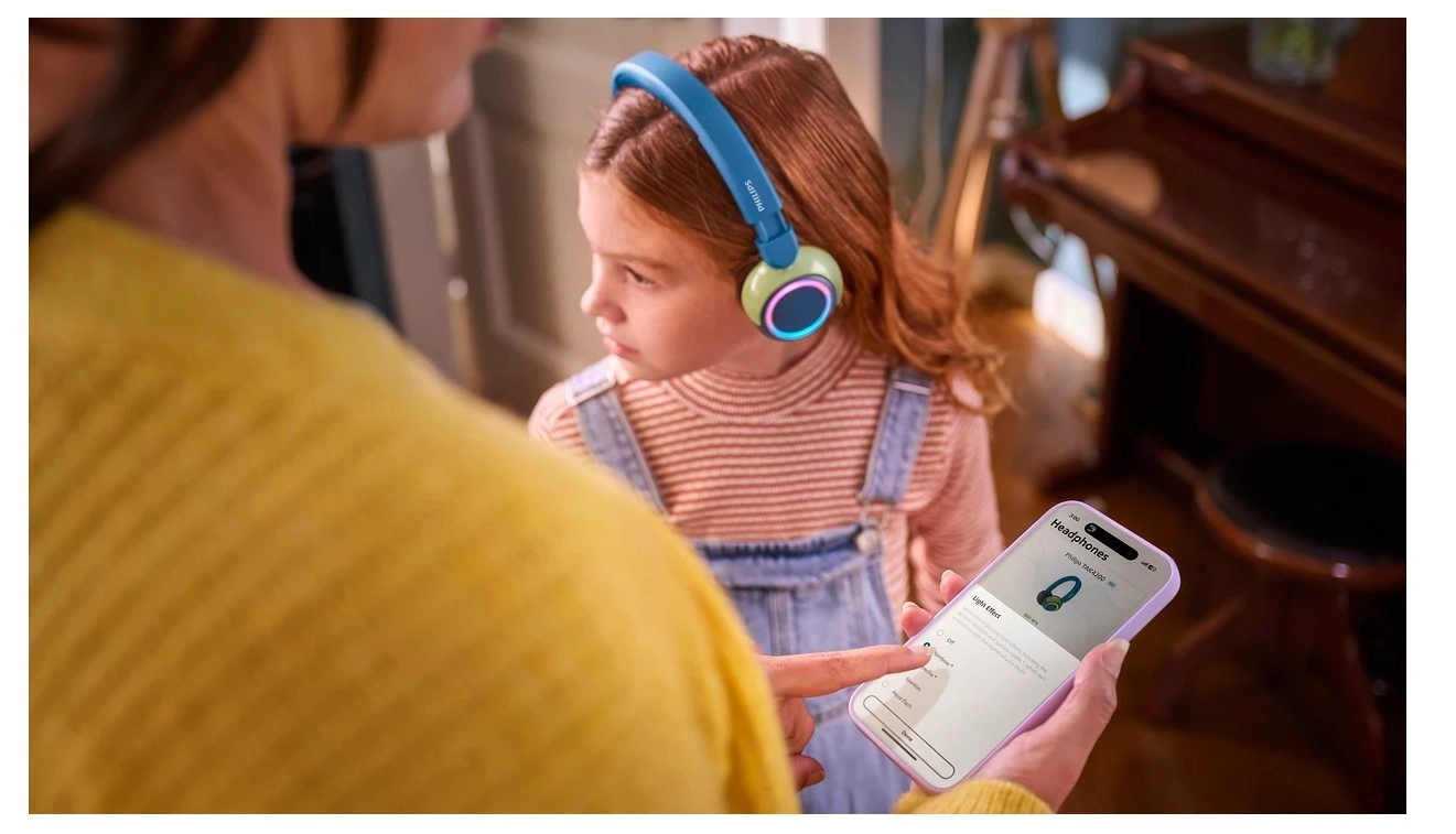 Protejați auzul copiilor datorită limitei implicite de 75 dB pentru acasă și modului de călătorie de 85 dB, care poate fi activat în aplicația Philips Headphones.