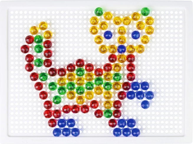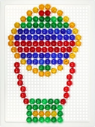 Acest mozaic cu cristale este o alegere ideală pentru primele activități creative. Datorită pionezelor transparente colorate, pe suportul alb prind viață imagini expresive și jucăușe. Copiii își exersează răbdarea, coordonarea mână-ochi și învață să recunoască culorile și formele.
