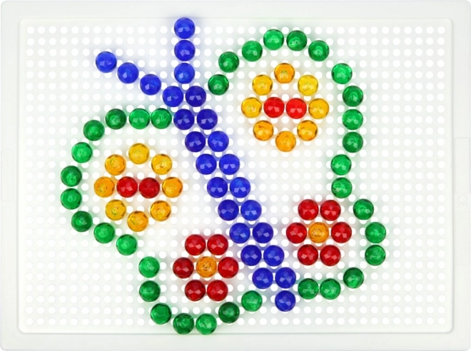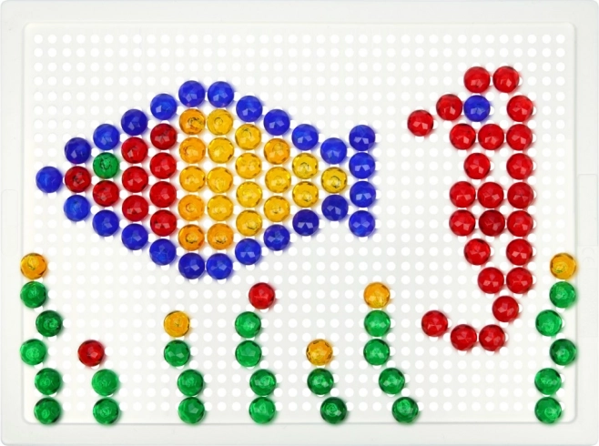 Pachetul conține o grilă din plastic cu dimensiunile 21 × 16 cm și 140 de pioneze cu diametrul de 10 mm – perfecte pentru mâna copilului. Mozaicul nu include șabloane, astfel încât susține în mod natural creativitatea liberă și crearea independentă a motivelor.