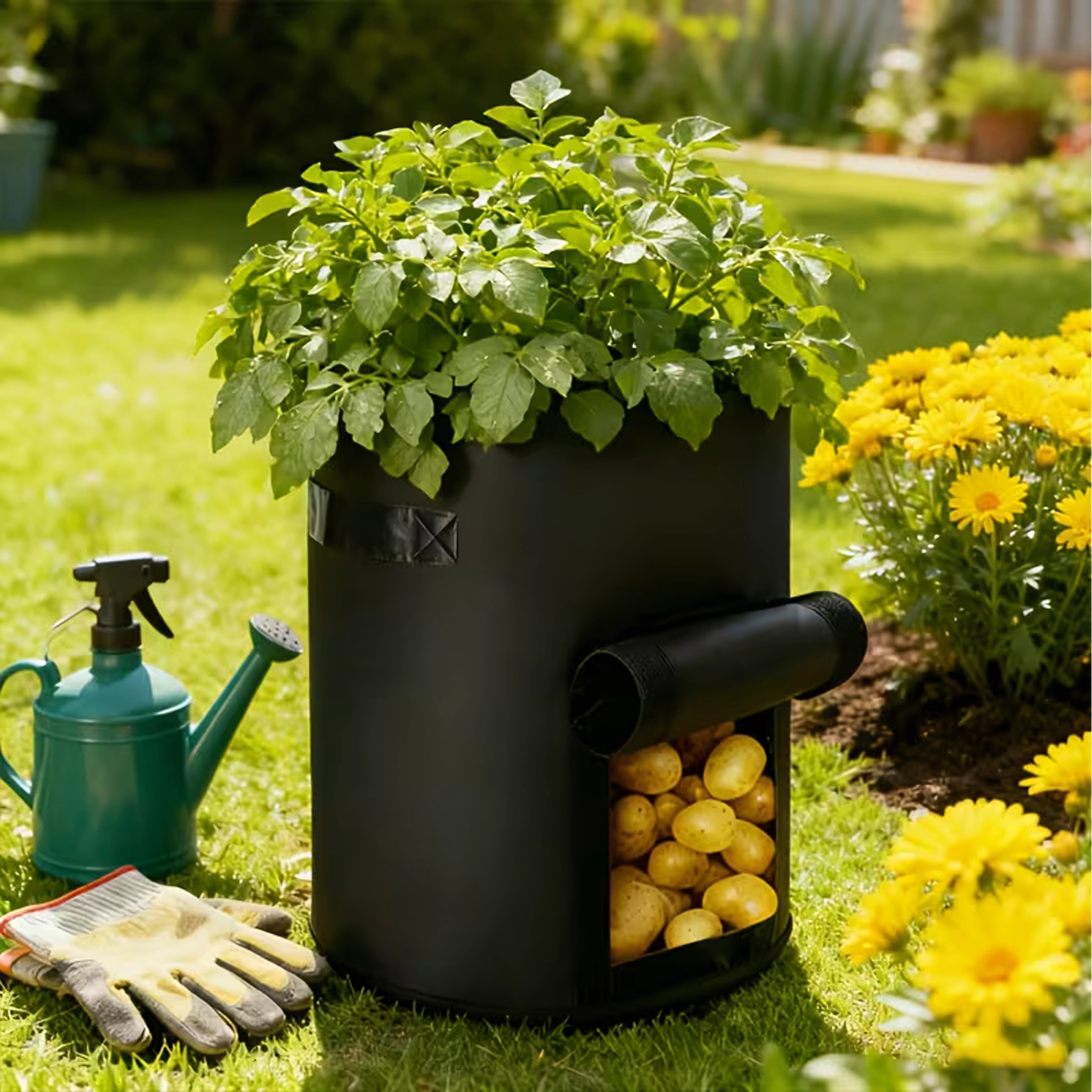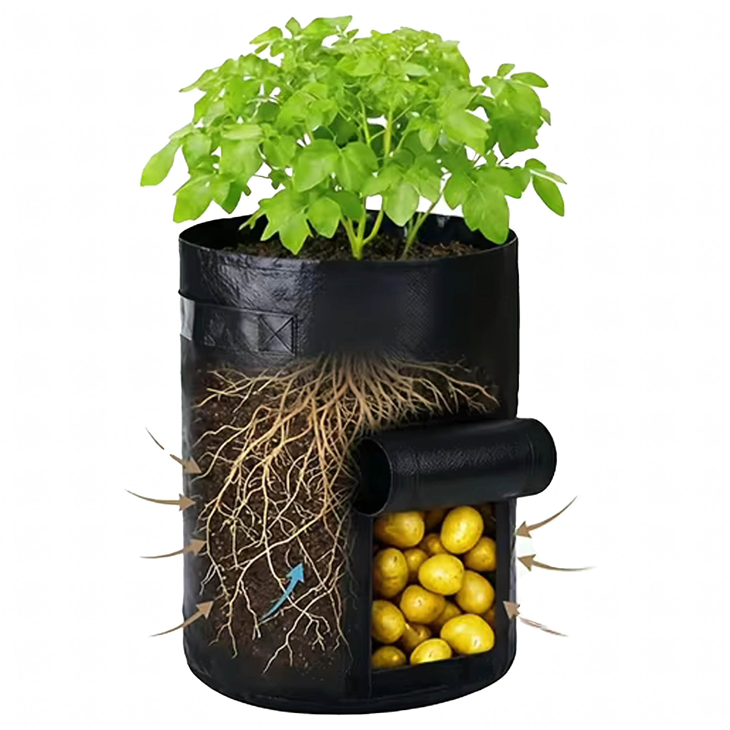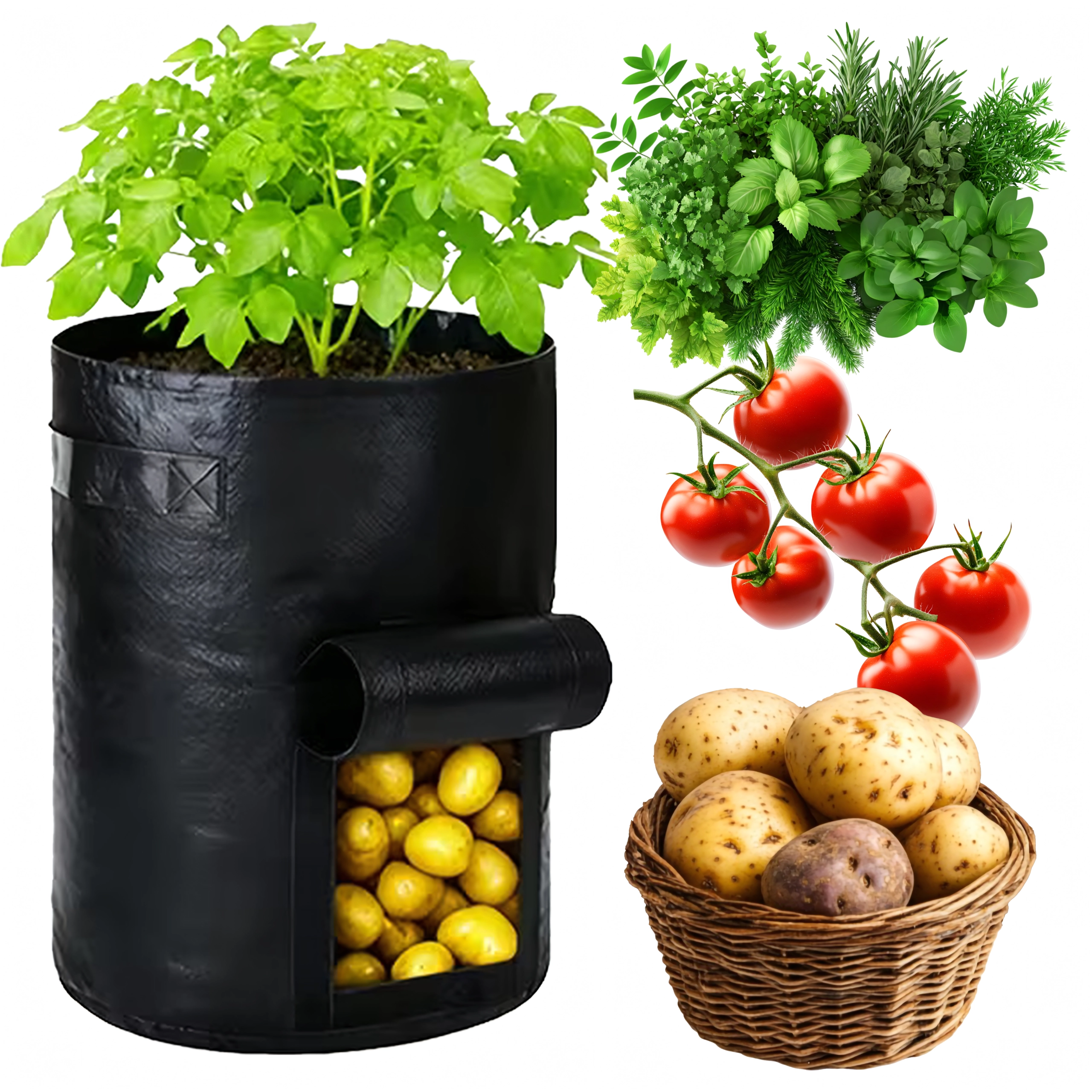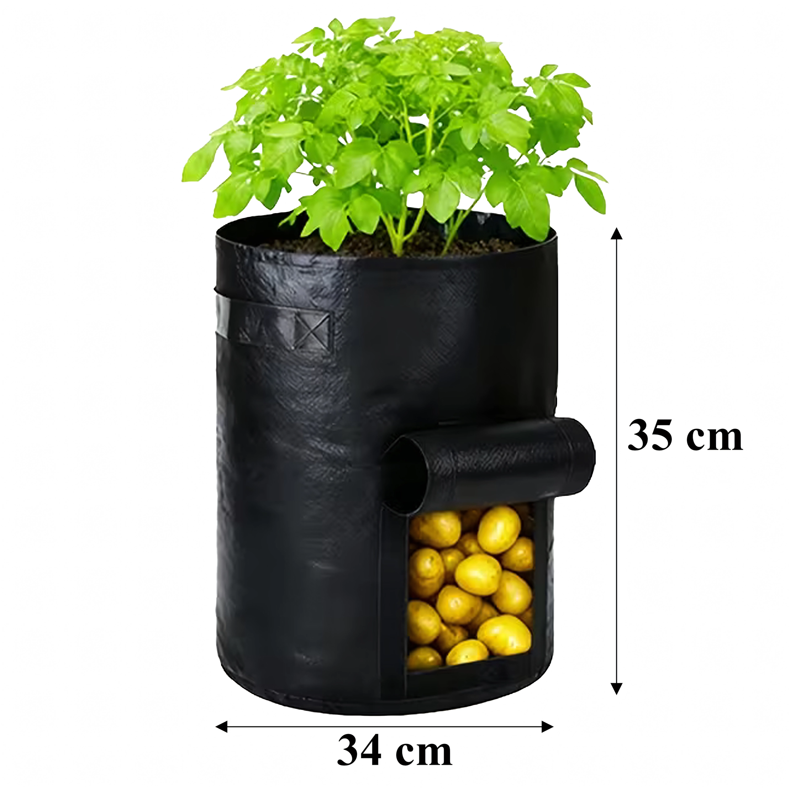 Maximizați recolta chiar și în spații mici. Acest sac de cultivare este ideal pentru cartofi, morcovi, ridichi, ceapă sau ierburi aromatice. Fereastra laterală cu scai facilitează controlul periodic și recoltarea – fără a fi nevoie să răsturnați substratul.