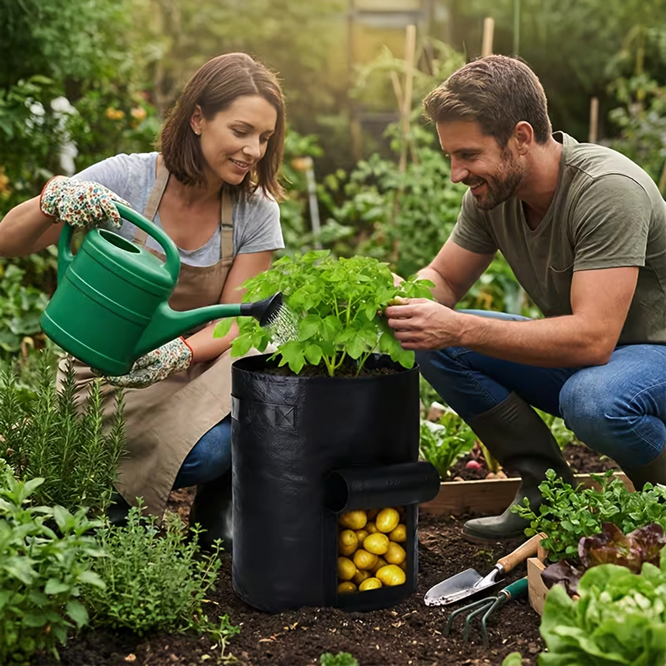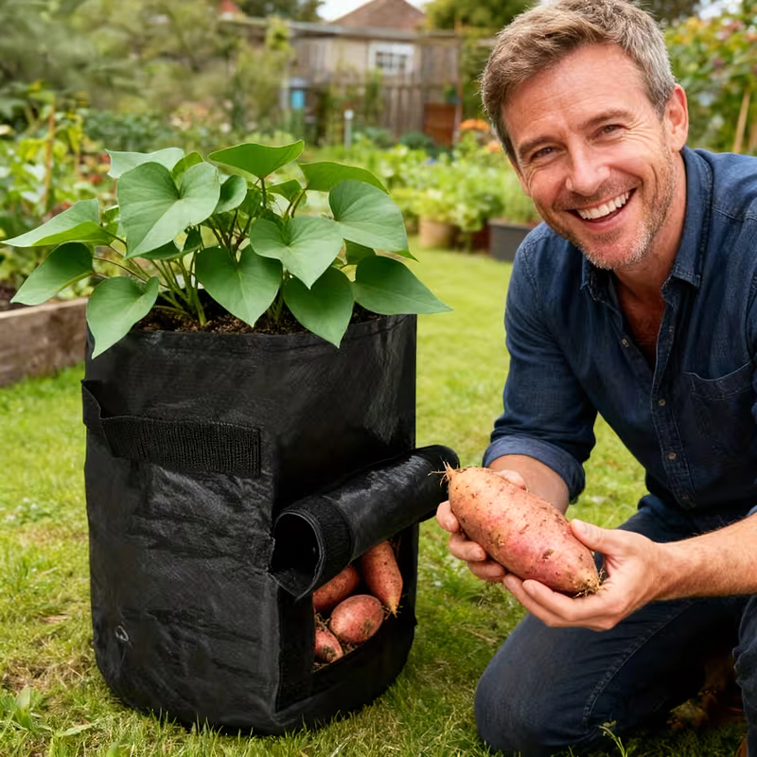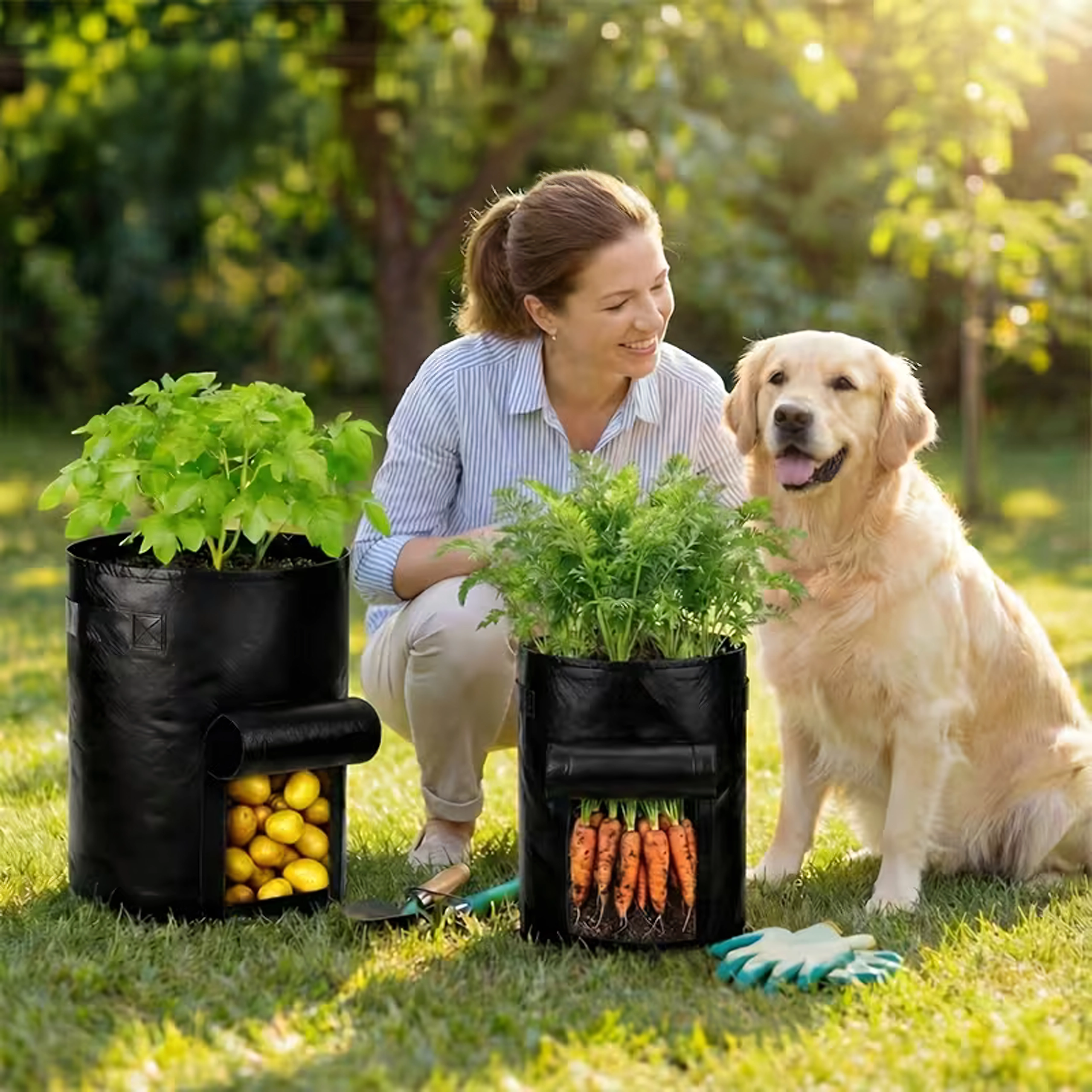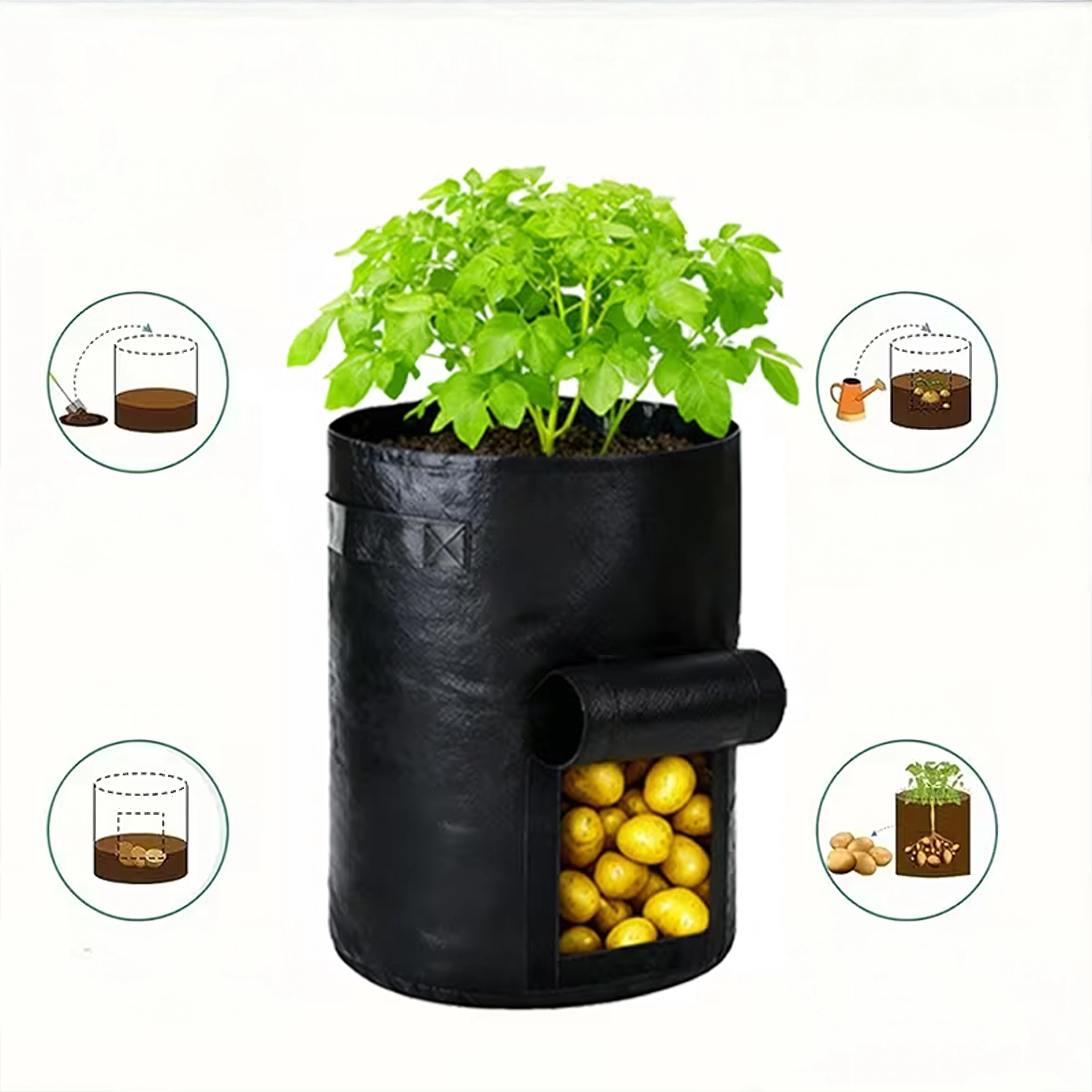 Maximizați recolta chiar și în spații mici. Acest sac de cultivare este ideal pentru cartofi, morcovi, ridichi, ceapă sau ierburi aromatice. Fereastra laterală cu scai facilitează controlul periodic și recoltarea – fără a fi nevoie să răsturnați substratul.