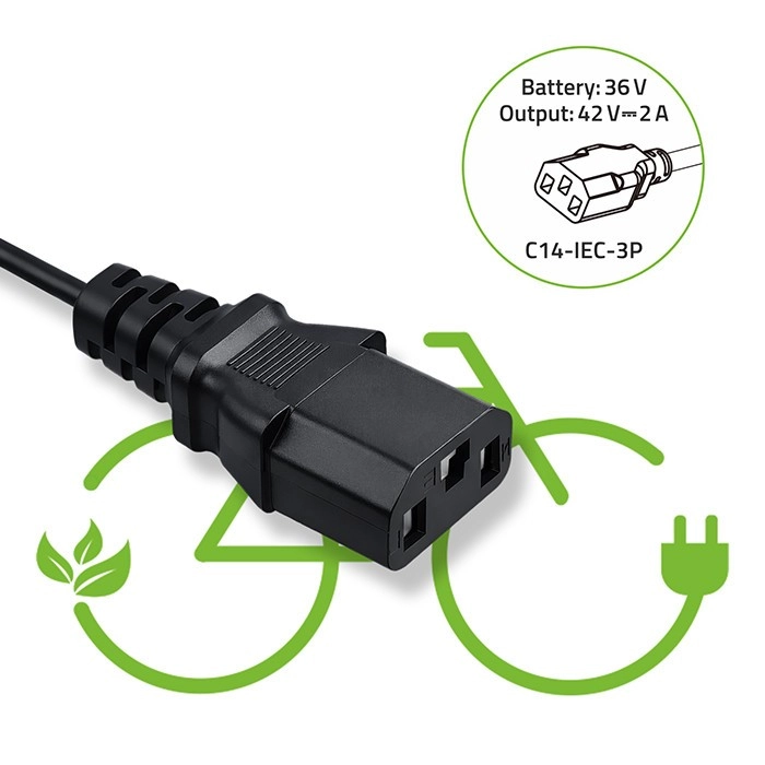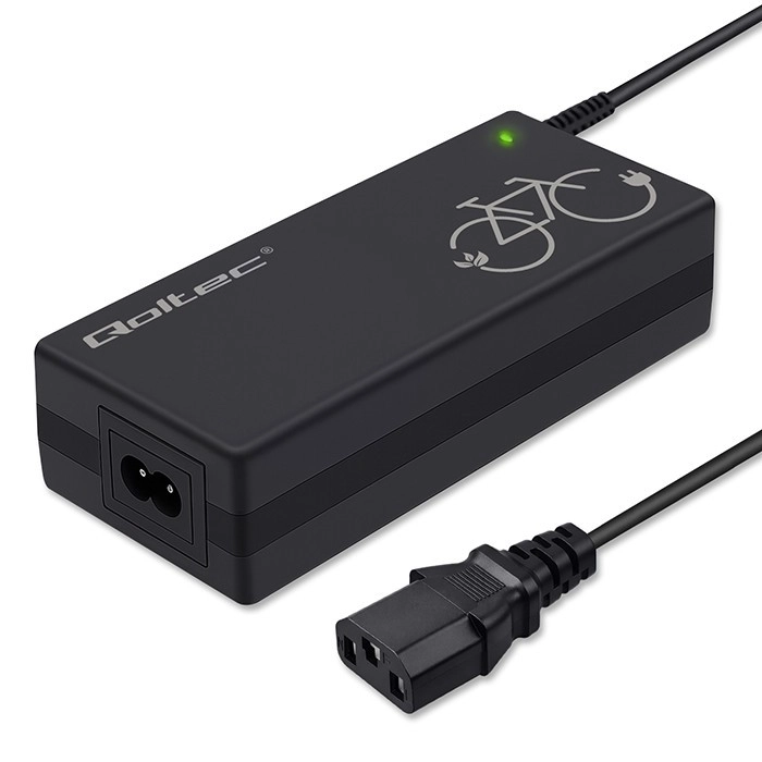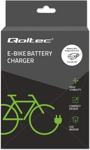 Încărcătorul compact Qoltec pentru biciclete electrice oferă ieșire 42 V / 2 A (84 W) pentru acumulatori Li‑ion de 36 V. Datorită conectorului C14 IEC 3 pini și alimentării din priza standard de 230 V, este ideal atât pentru utilizare acasă, cât și în călătorii. Încărcătorul oferă siguranță ridicată, fiabilitate și răcire eficientă, are indicator LED de încărcare și rezistență IP54 la praf și stropi de apă.