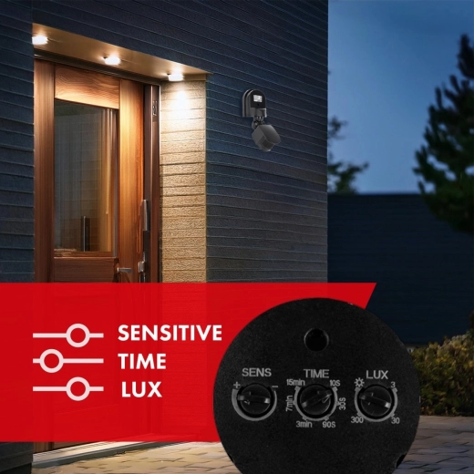 Senzorul fiabil de mișcare și amurg facilitează controlul confortabil și economic al luminilor pe holuri, în antreu, garaj sau pe terase acoperite. Datorită unghiului larg de detectare de 180° și razei reglabilă de 5–12 m, adaptați precis acoperirea la condițiile specifice. Capul rotativ permite ajustarea fină a direcției de detecție, minimizând declanșările nedorite.