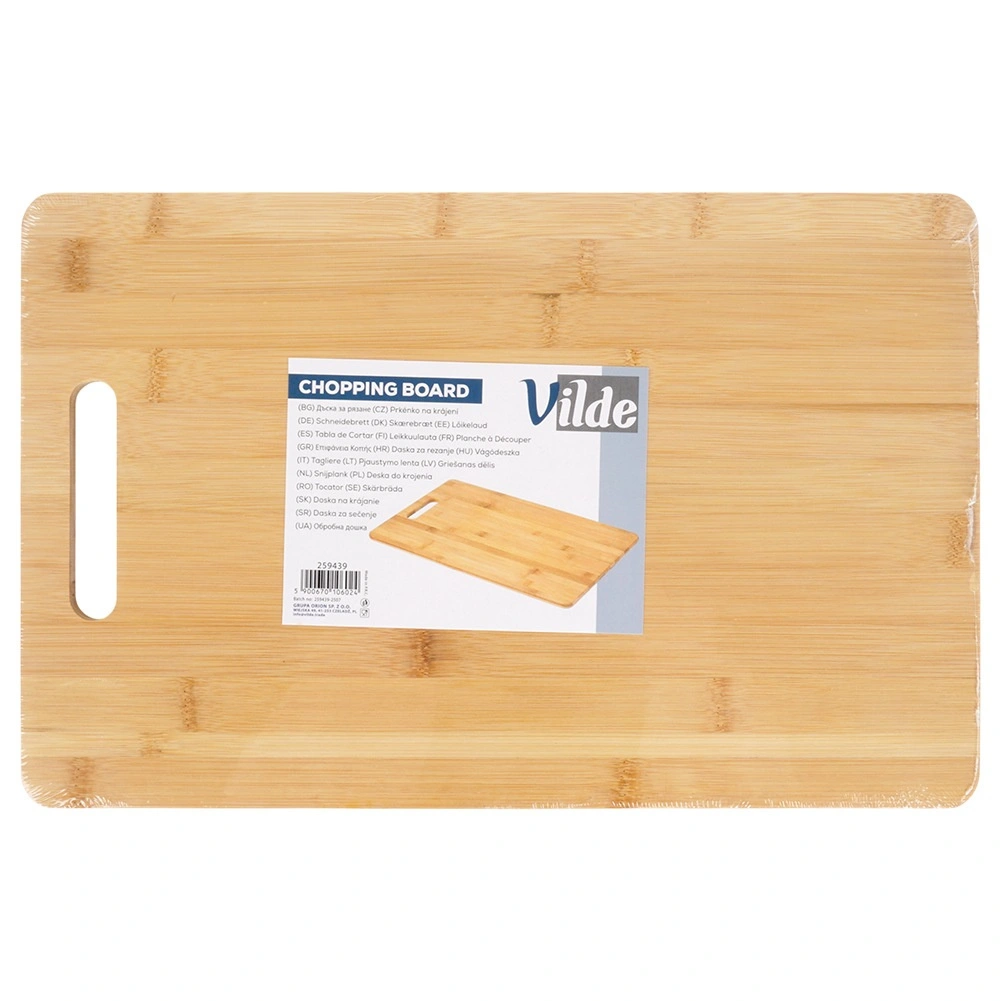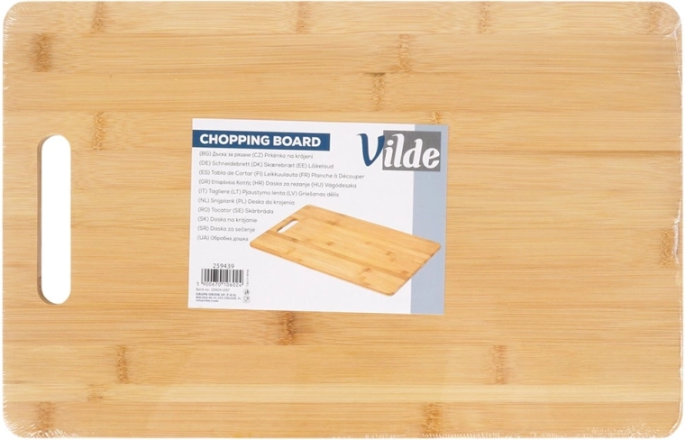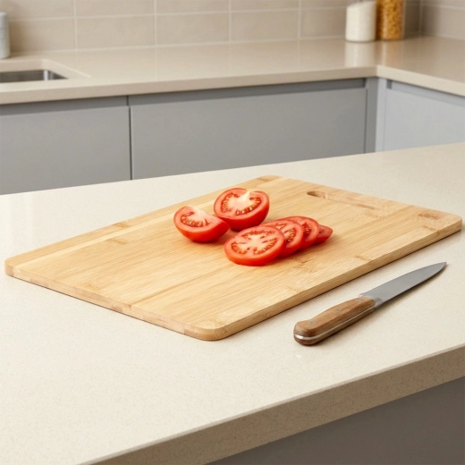 Fabricat din lemn de bambus de calitate, cu rezistență naturală la umiditate și deformări. Suprafața este blândă cu muchia cuțitelor.