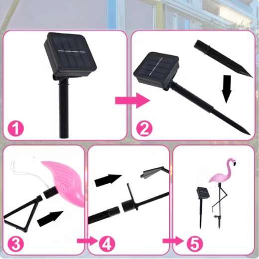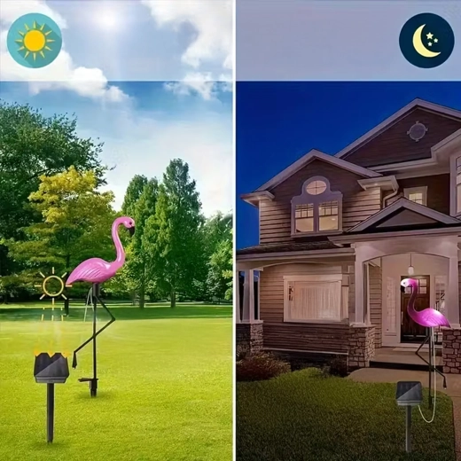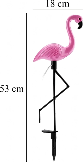 Această lampă de grădină solară în formă de flamingo adaugă exteriorului tău un accent jucăuș și o atmosferă plăcută. Ziua se încarcă la soare, iar după lăsarea serii se aprinde automat, oferind o strălucire roz spectaculoasă. Este ideală pentru delimitarea cărărilor, în jurul iazului sau ca element atrăgător la petrecerile în aer liber.