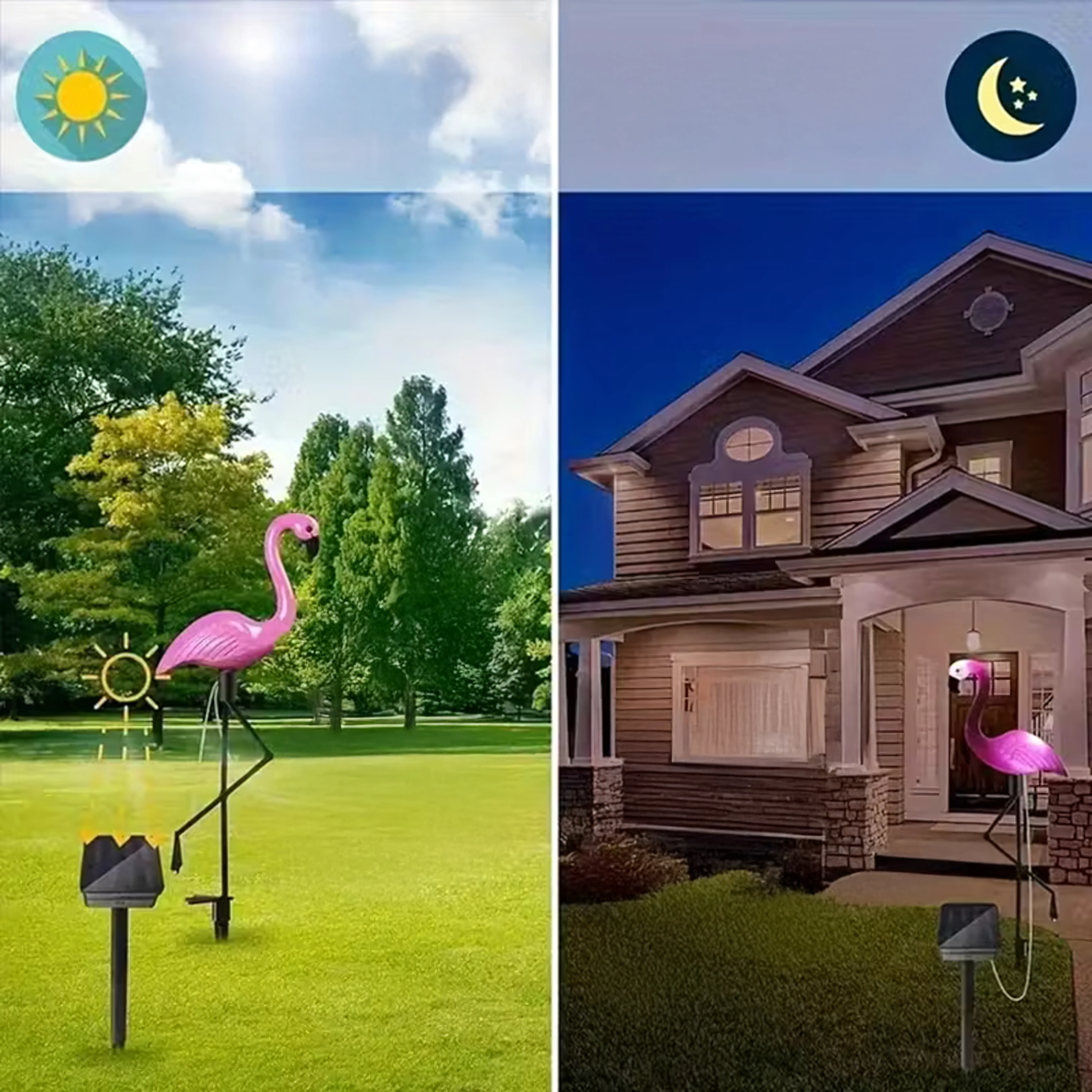 Înveselește-ți grădina cu o decorațiune stilată – lampă LED solară în formă de flamingo, înălțime 53 cm. Oferă iluminare automată pe timp de noapte, instalare ușoară în sol și rezistență la intemperii. Ideală pentru alei, straturi de flori și terase.