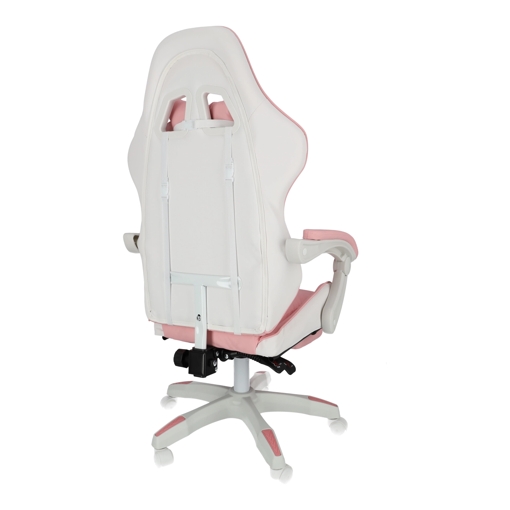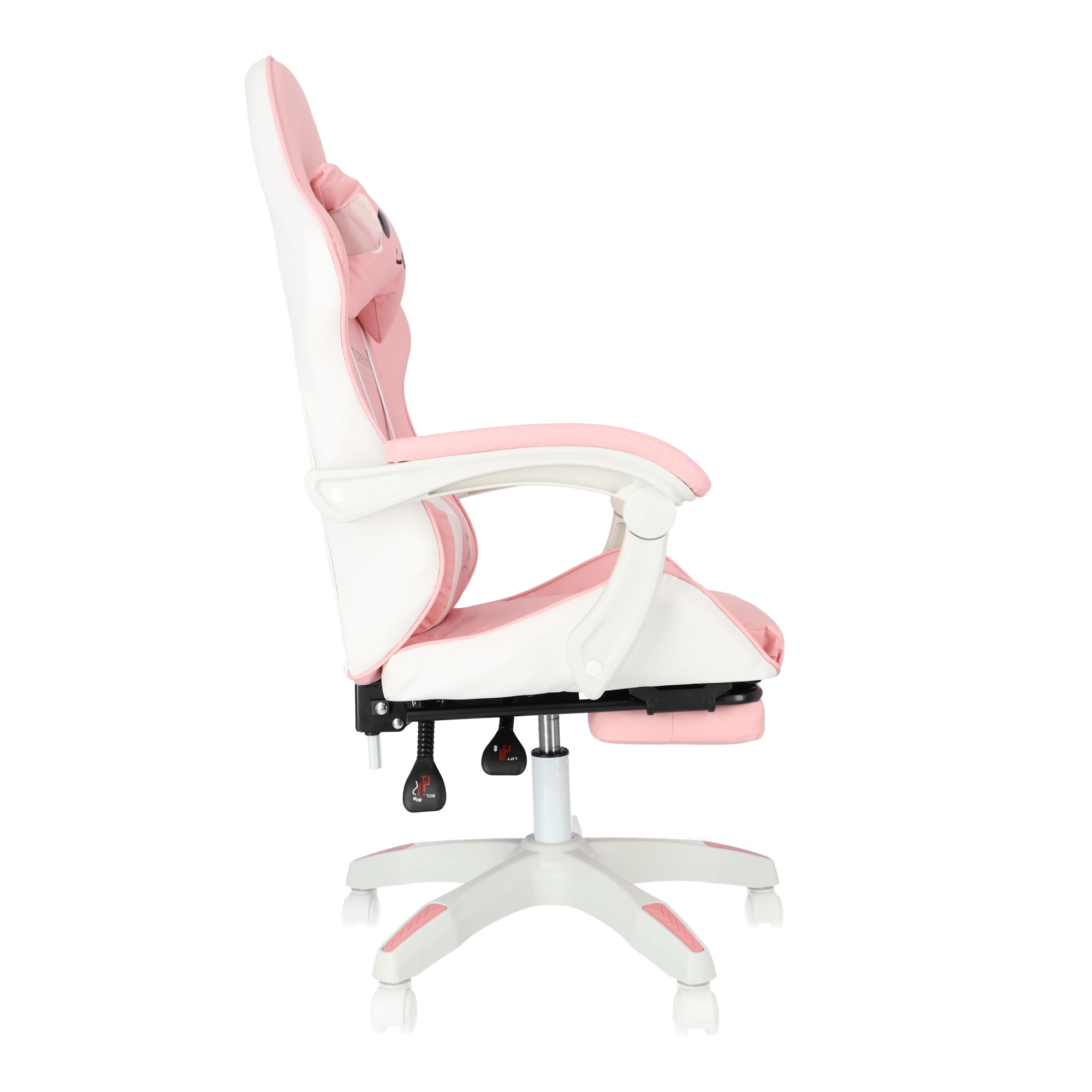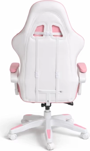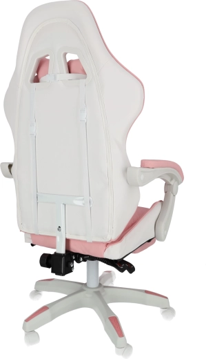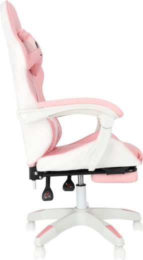 La confort contribuie cotierele capitonate și suportul de picioare extensibil, care transformă rapid poziția de lucru într-una de relaxare. Baza robustă cu mecanism de rotire 360° și roți permite deplasarea ușoară prin cameră. Designul roz-alb stilat se potrivește camerelor moderne pentru copii și adolescenți.