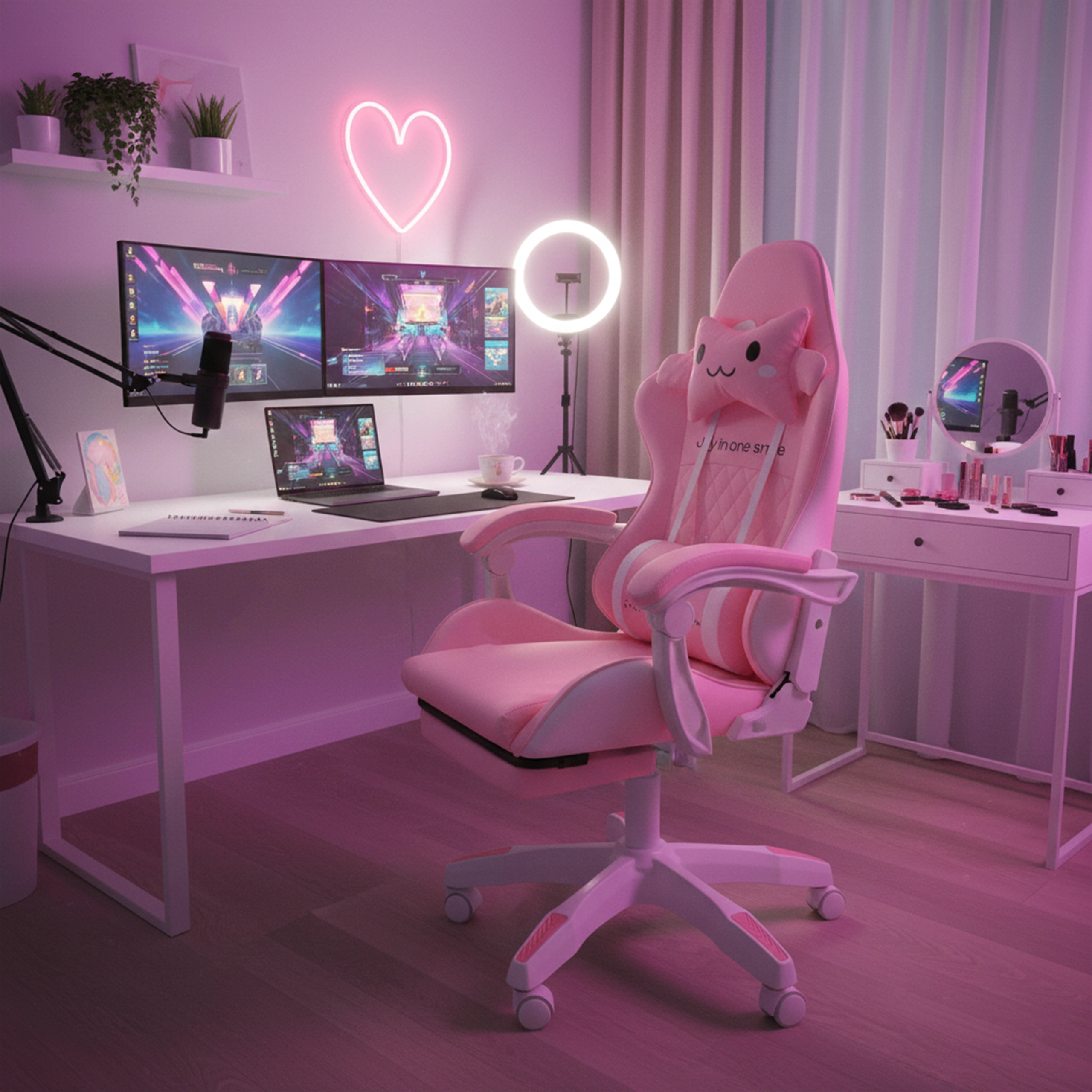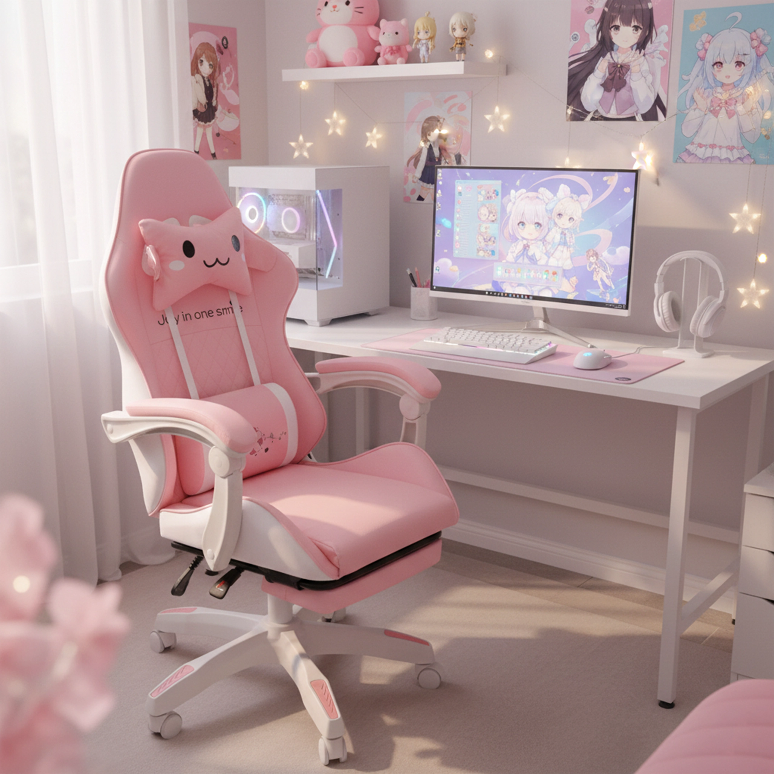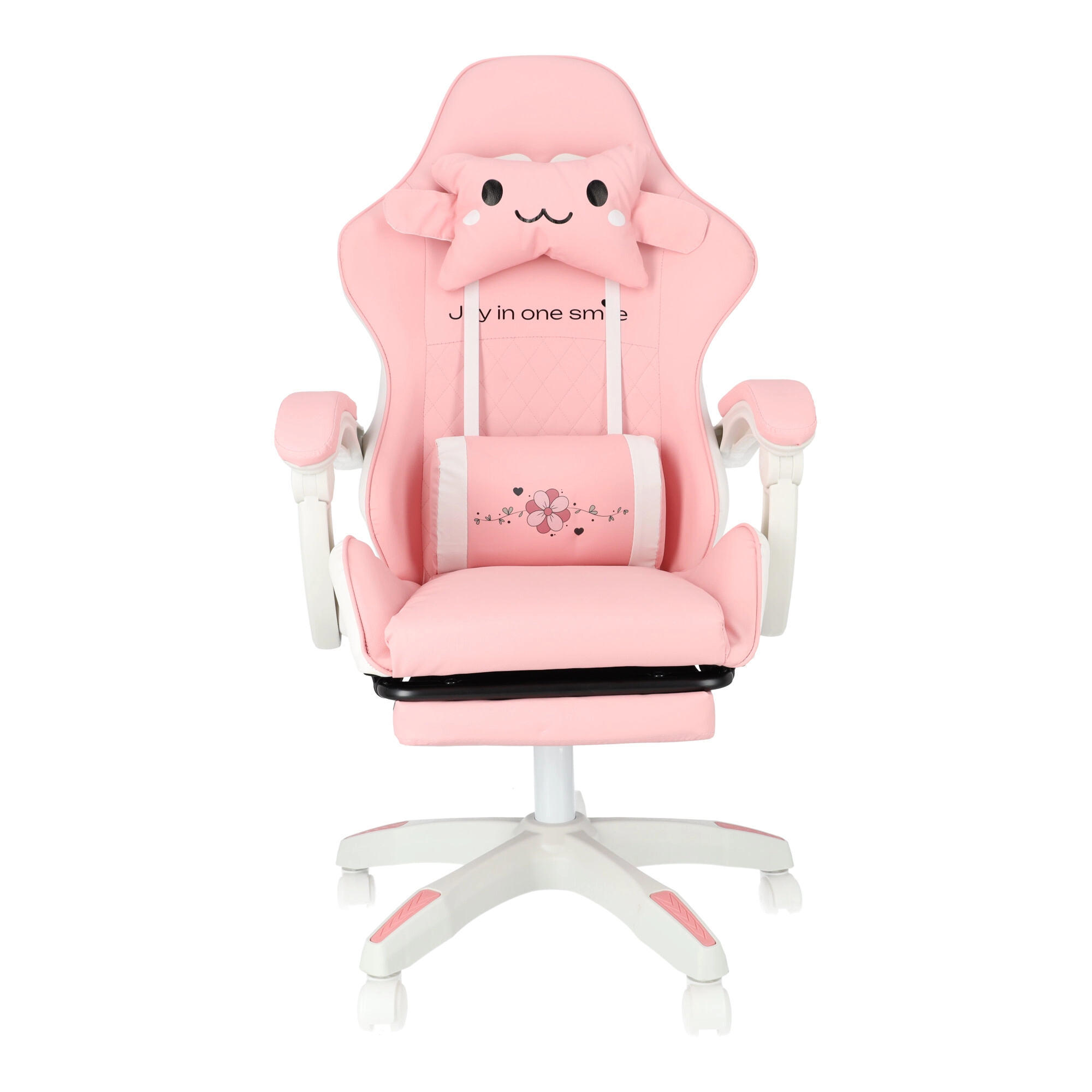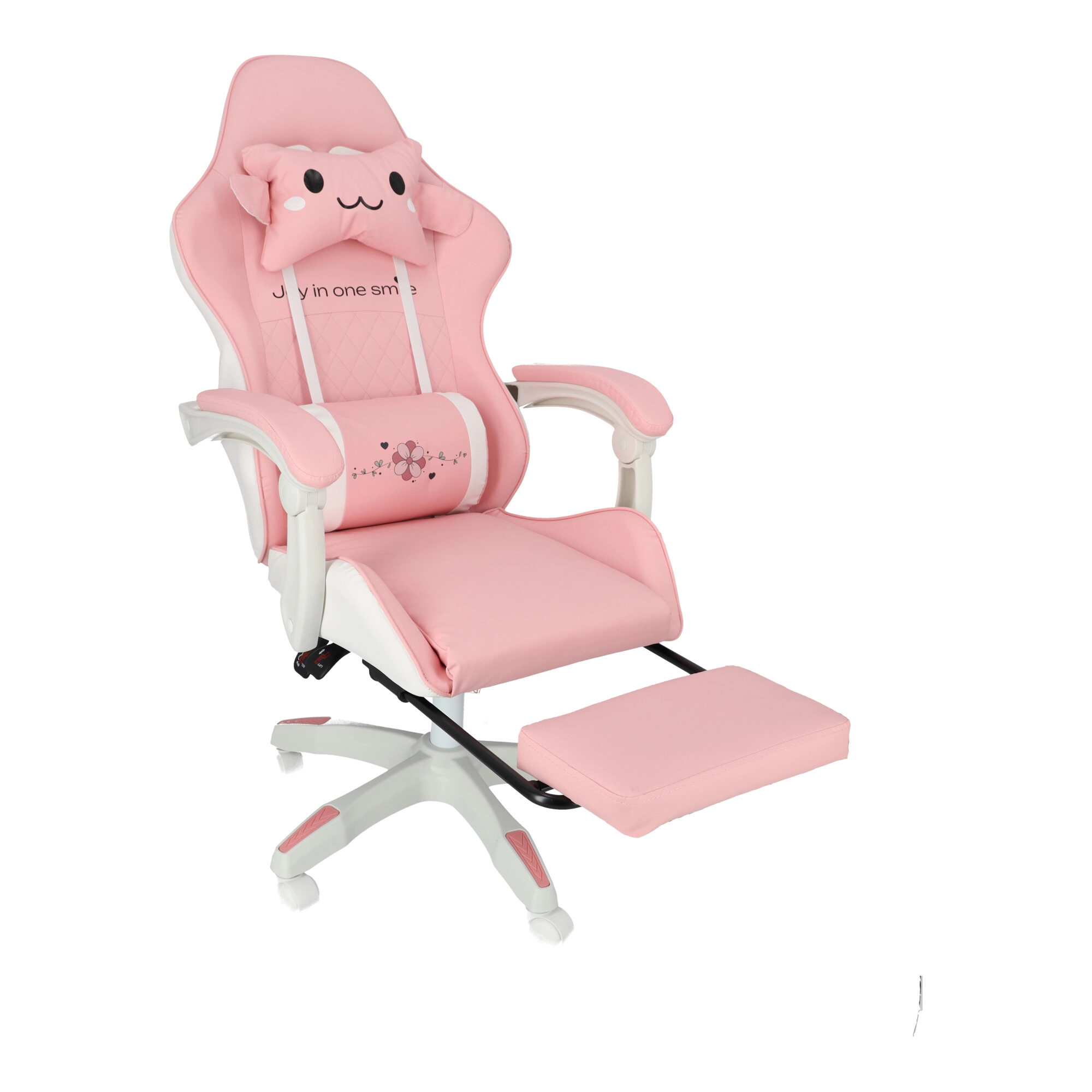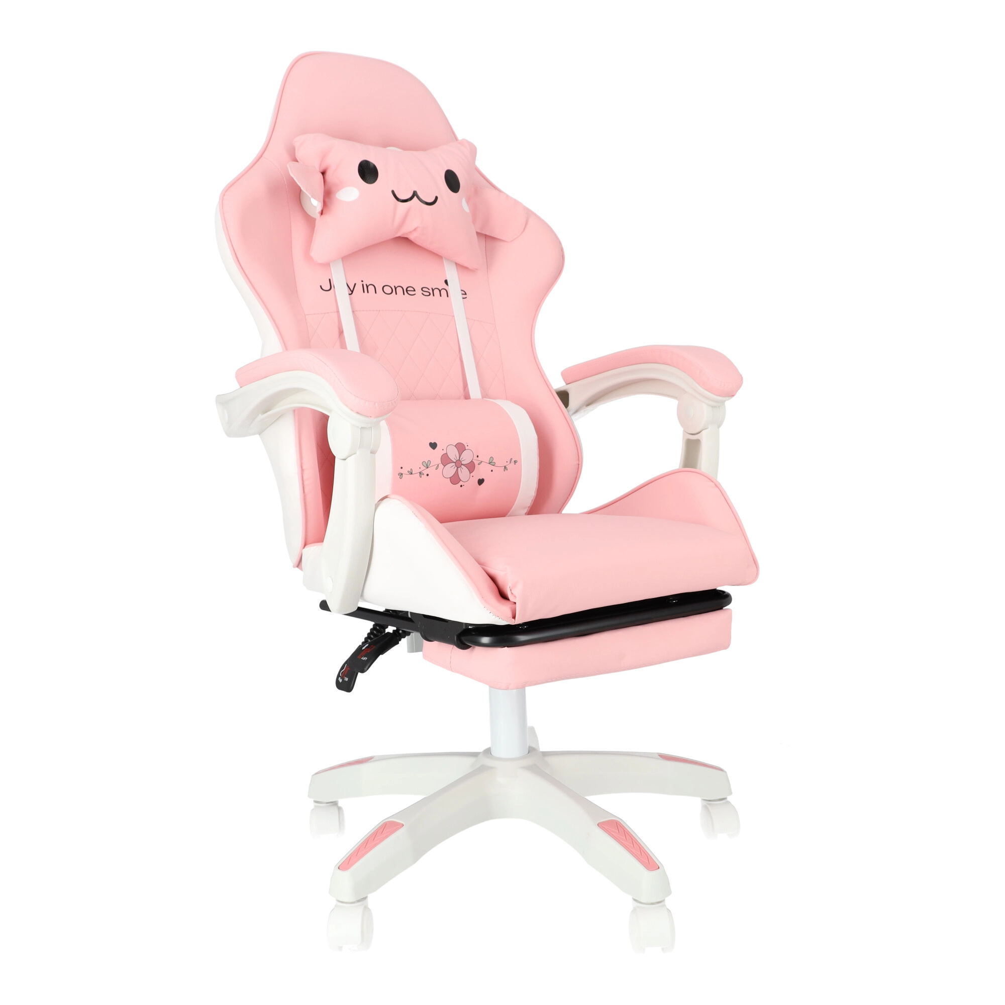Scaunul roz pentru copii, de gaming și birou, combină confort ergonomic, înălțime reglabilă și suport de picioare extensibil pentru odihnă rapidă. Scaunul tip bucket oferă susținere stabilă pentru spate, cotiere moi cu spumă și rotire lină la 360° cu roți, ușurând atât învățatul, cât și joaca. Include pernuțe pentru gât și zona lombară pentru o ședere mai sănătoasă în camera copilului.