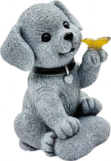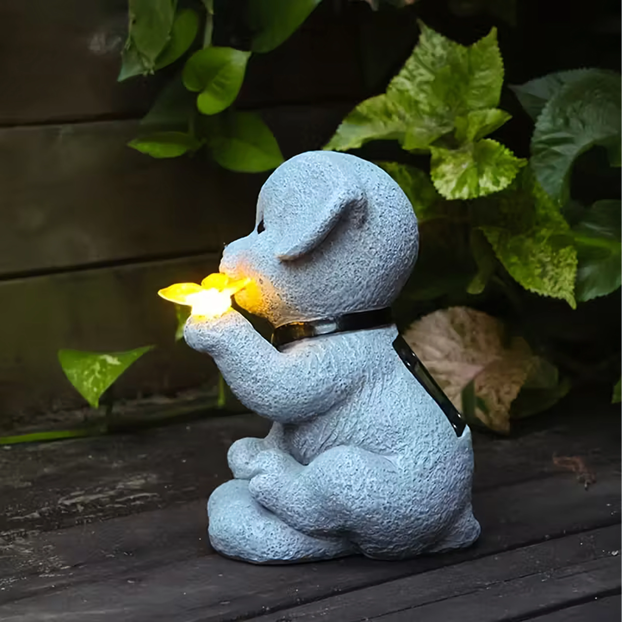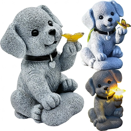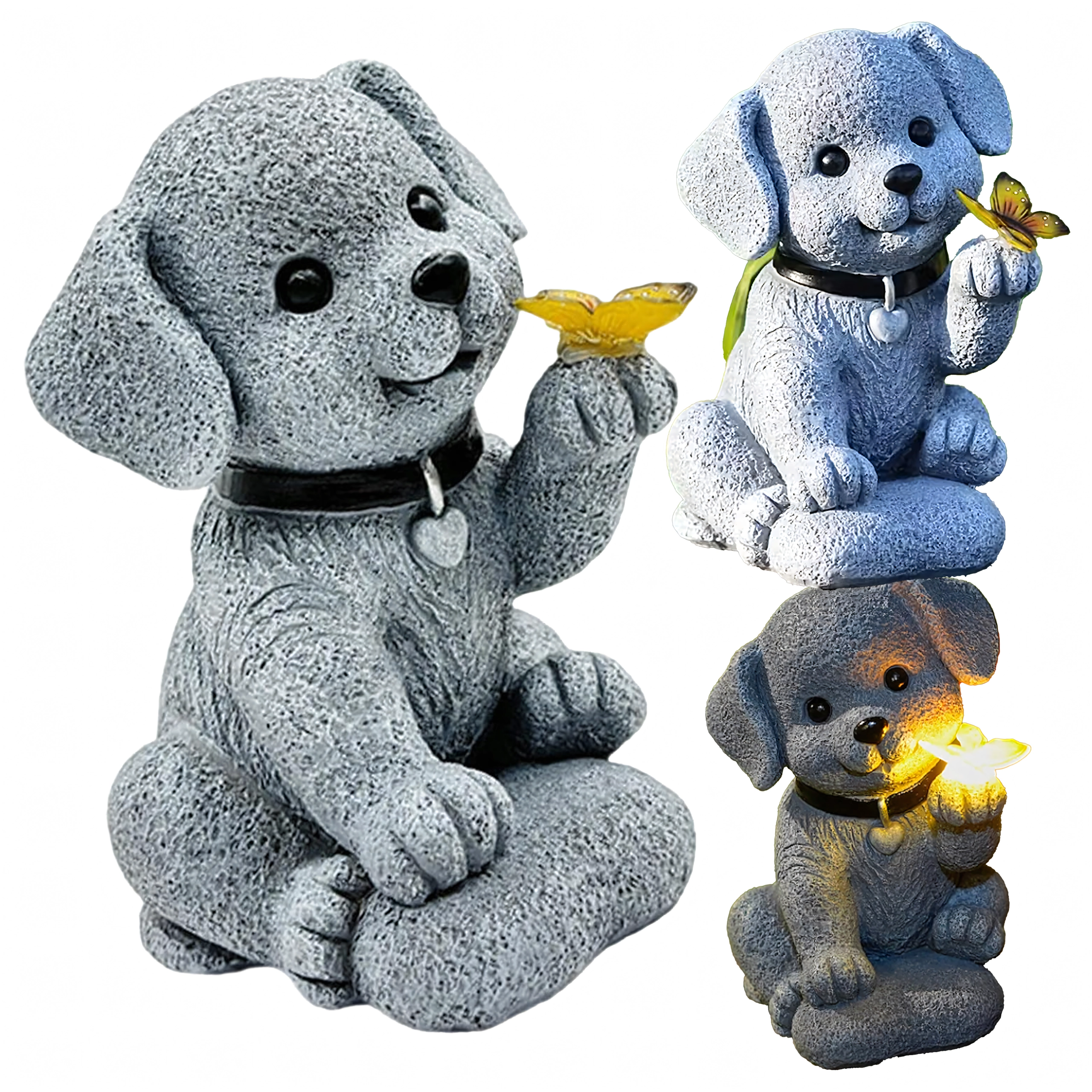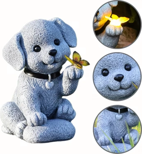 Această lampă solară decorativă de grădină, câine cu fluture, îmbină farmecul unei decorațiuni cu iluminarea practică. Fluturele din lăbuță se aprinde după amurg cu o lumină caldă plăcută și creează o atmosferă primitoare în grădină, la intrare, pe terasă sau pe pervaz.
