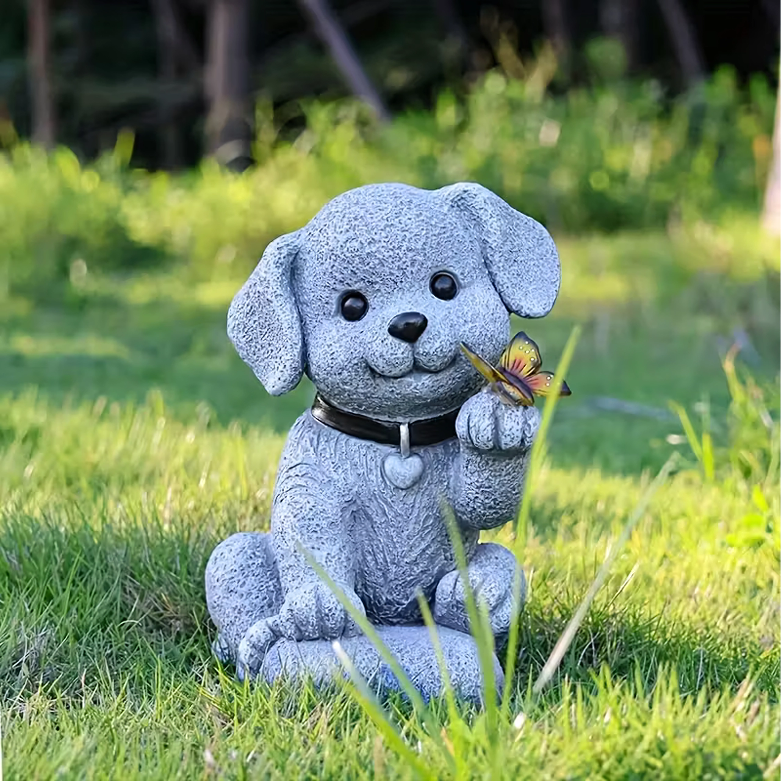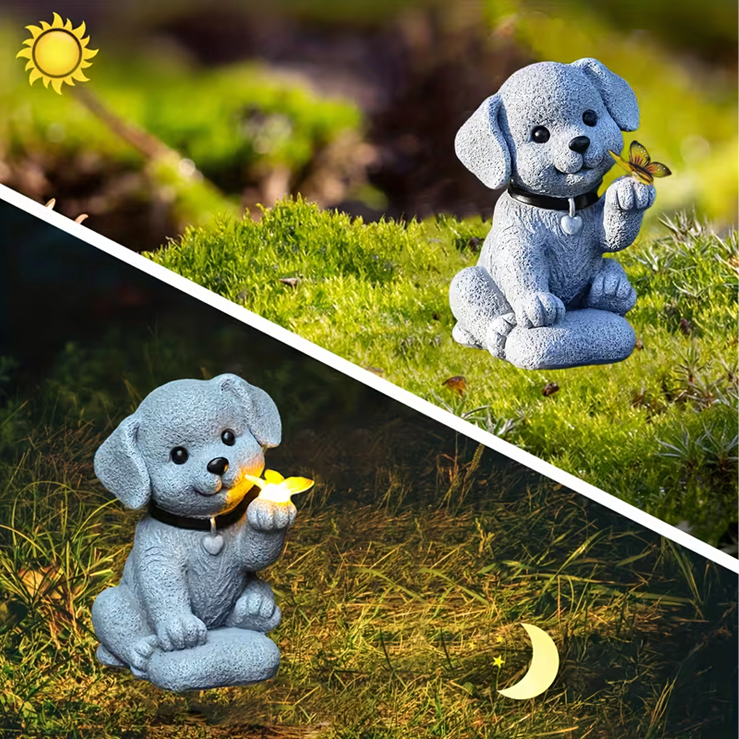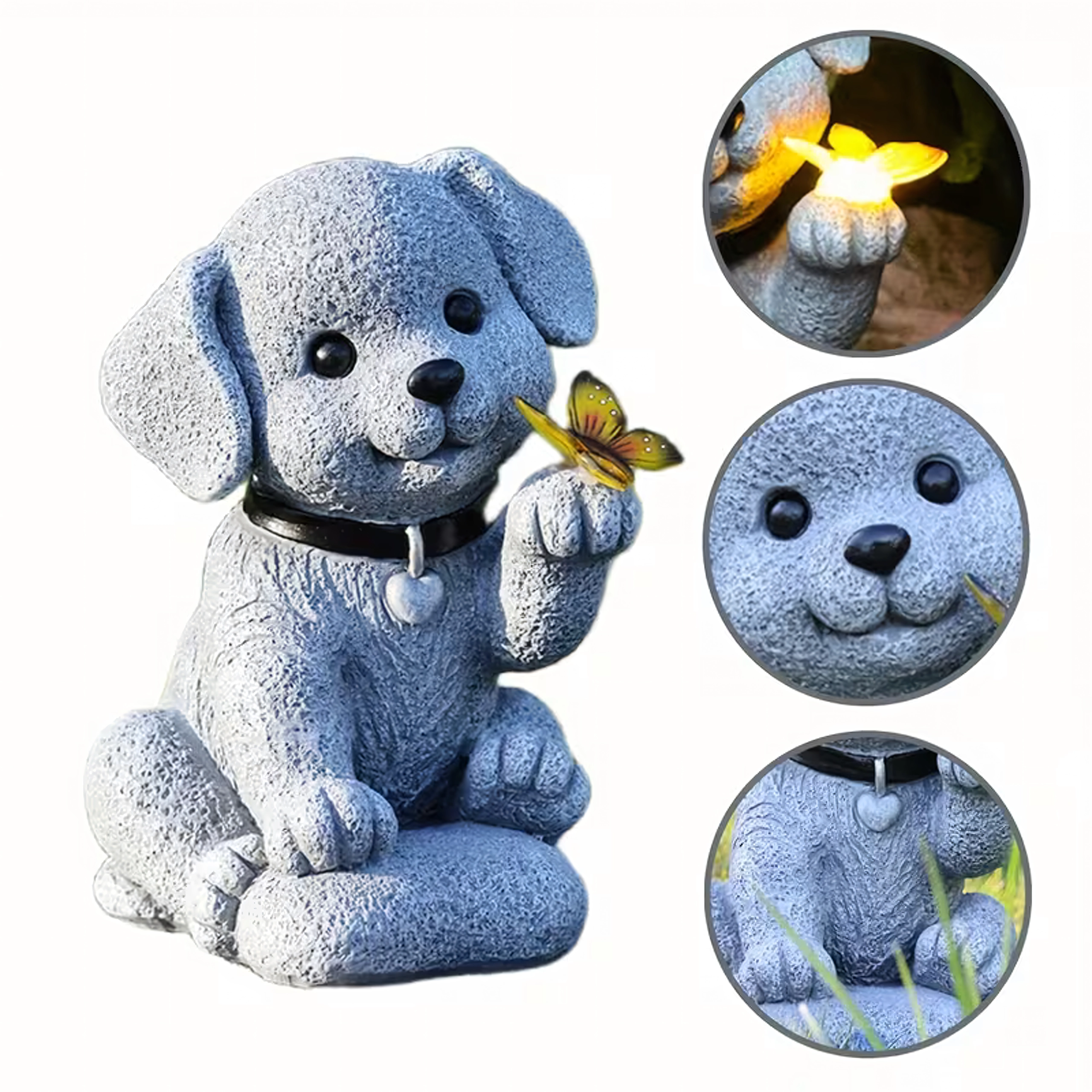 Această lampă solară decorativă de grădină, câine cu fluture, îmbină farmecul unei decorațiuni cu iluminarea practică. Fluturele din lăbuță se aprinde după amurg cu o lumină caldă plăcută și creează o atmosferă primitoare în grădină, la intrare, pe terasă sau pe pervaz.