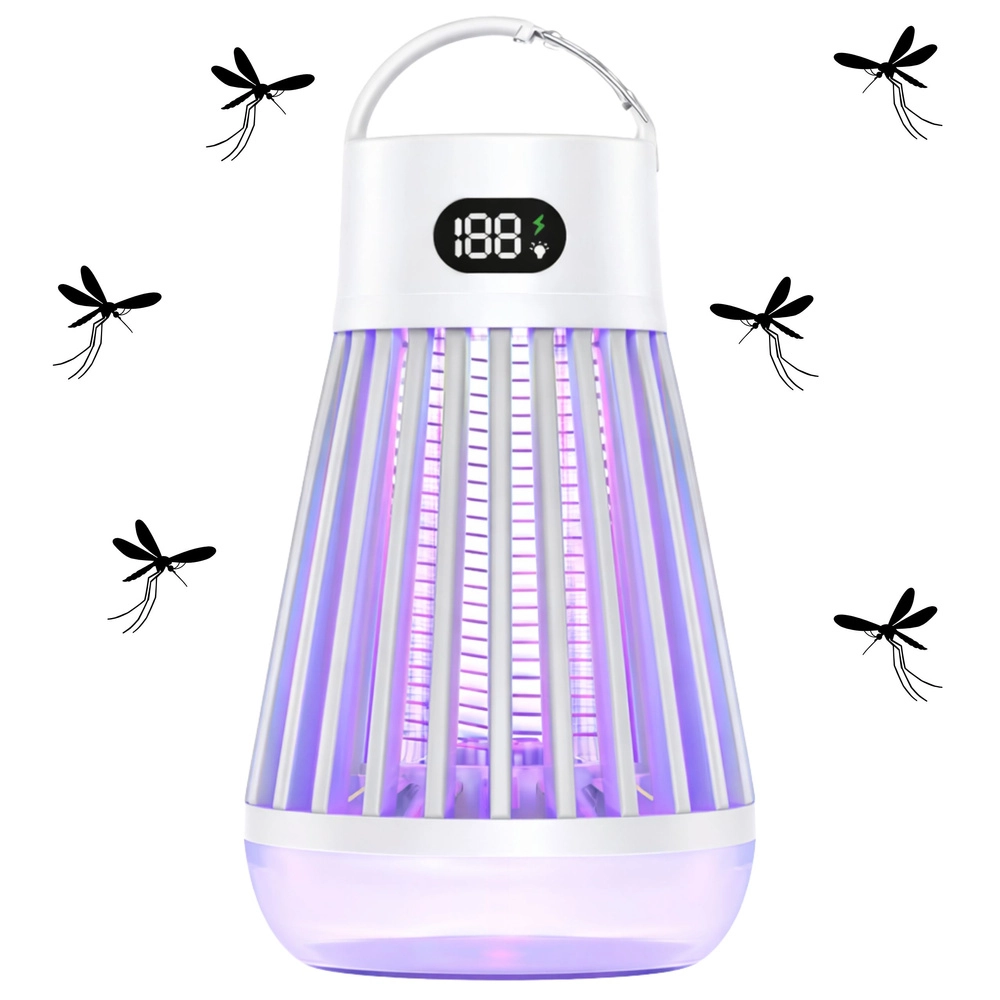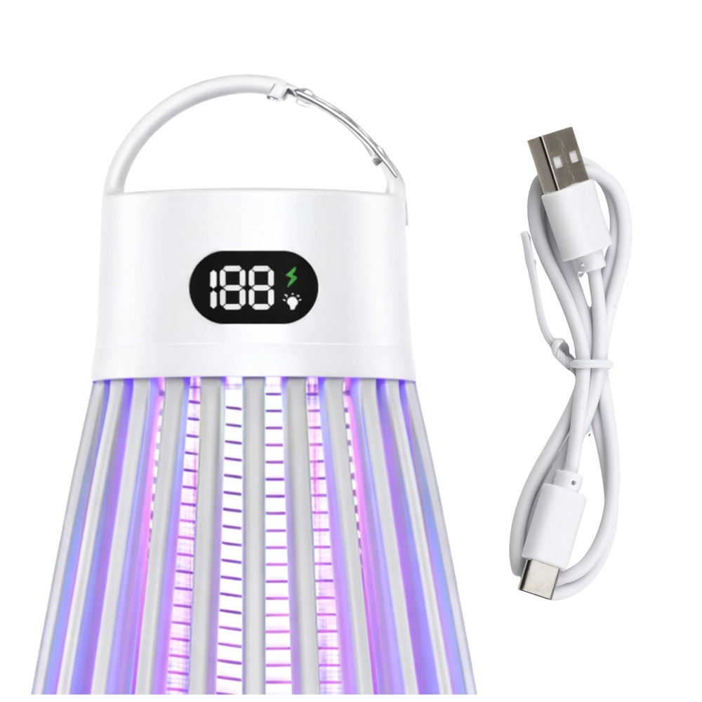 Lampa electrică modernă contra insectelor combină un atractor UV eficient (365/395/410 nm) și o plasă electrică internă de 2000 V pentru eliminarea rapidă a țânțarilor și a insectelor zburătoare. Datorită bateriei reîncărcabile de 2000 mAh, încărcării USB‑C și funcționării silențioase, fără substanțe chimice, este ideală pentru apartament, terasă, balcon și camping. Plasa de protecție și ecranul digital clar asigură funcționarea în siguranță.
