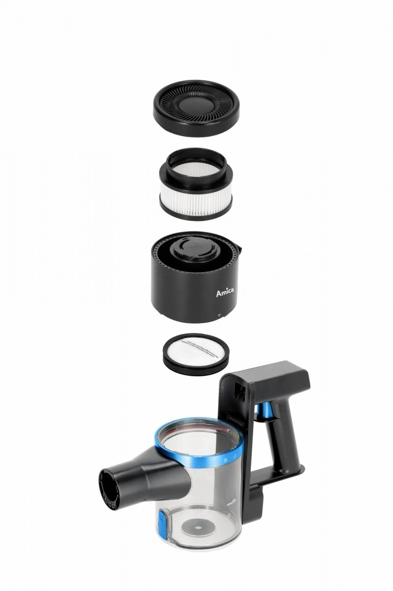 Aspiratorul vertical ușor și performant AMICA VGB 6010 oferă funcționare fără fir, baterie Li‑ion interschimbabilă, până la 30 de minute de lucru cu o singură încărcare și perie electrică cu iluminare LED pentru curățenie precisă chiar și în colțurile întunecate. Datorită filtrului EPA, reglării electronice a puterii și greutății reduse, este ideal pentru curățenia rapidă, zilnică, atât pe pardoseli dure, cât și pe covoare.