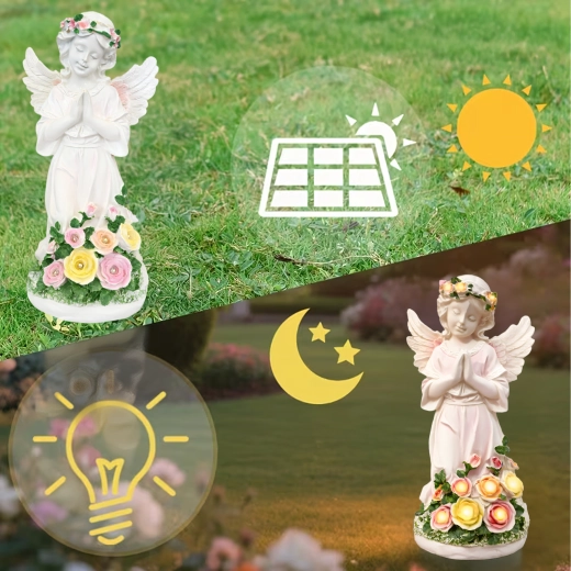 Îngerașul arată armonios ziua ca decorațiune, iar noaptea ca lumină de orientare discretă. LED-urile calde accentuează culorile trandafirilor și creează o atmosferă plăcută și liniștită pentru relaxare și aducere-aminte.