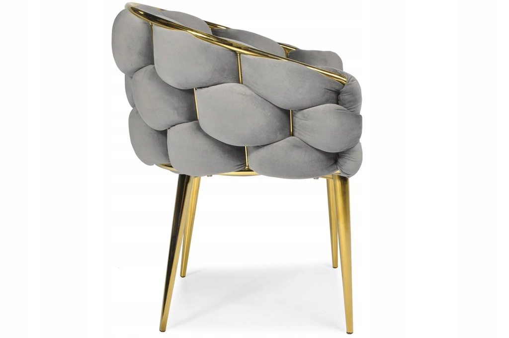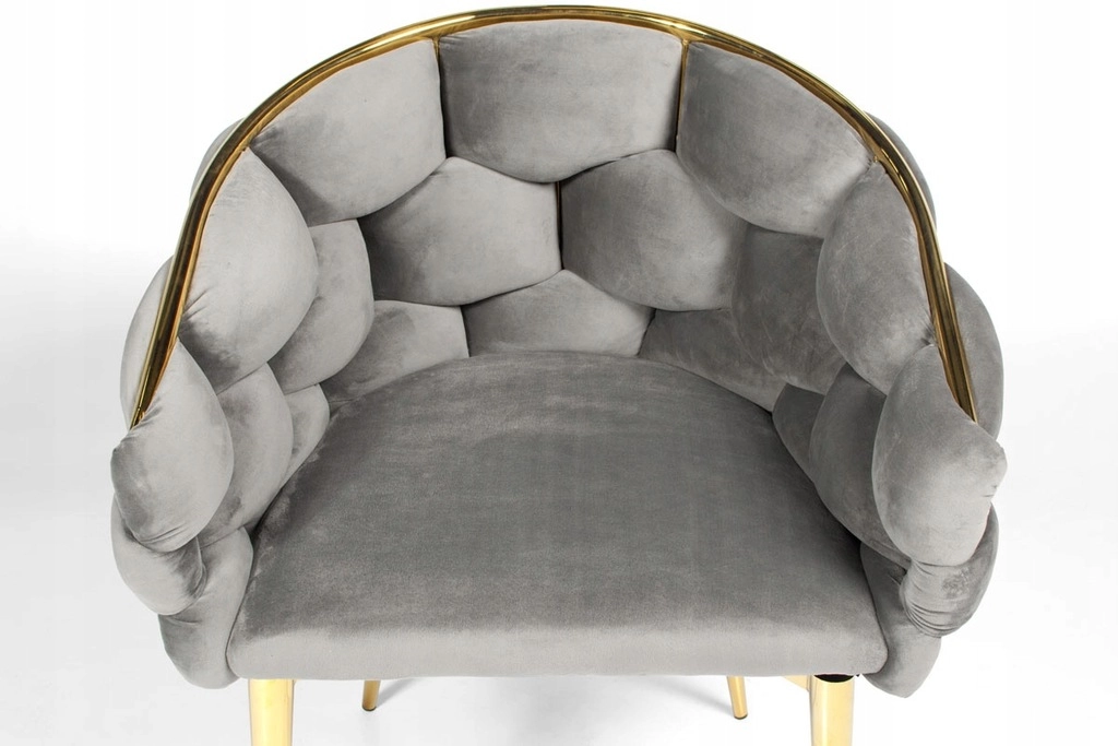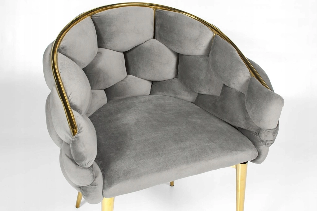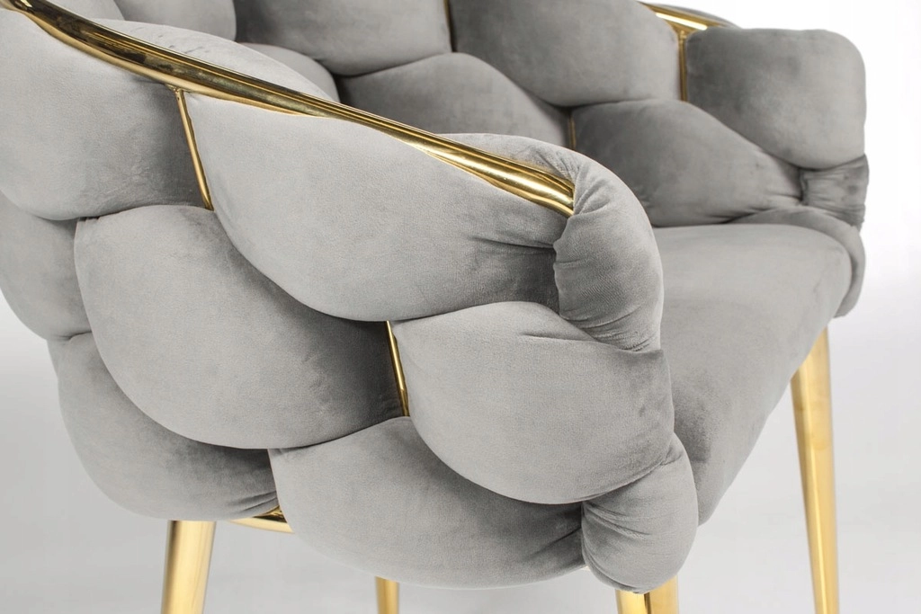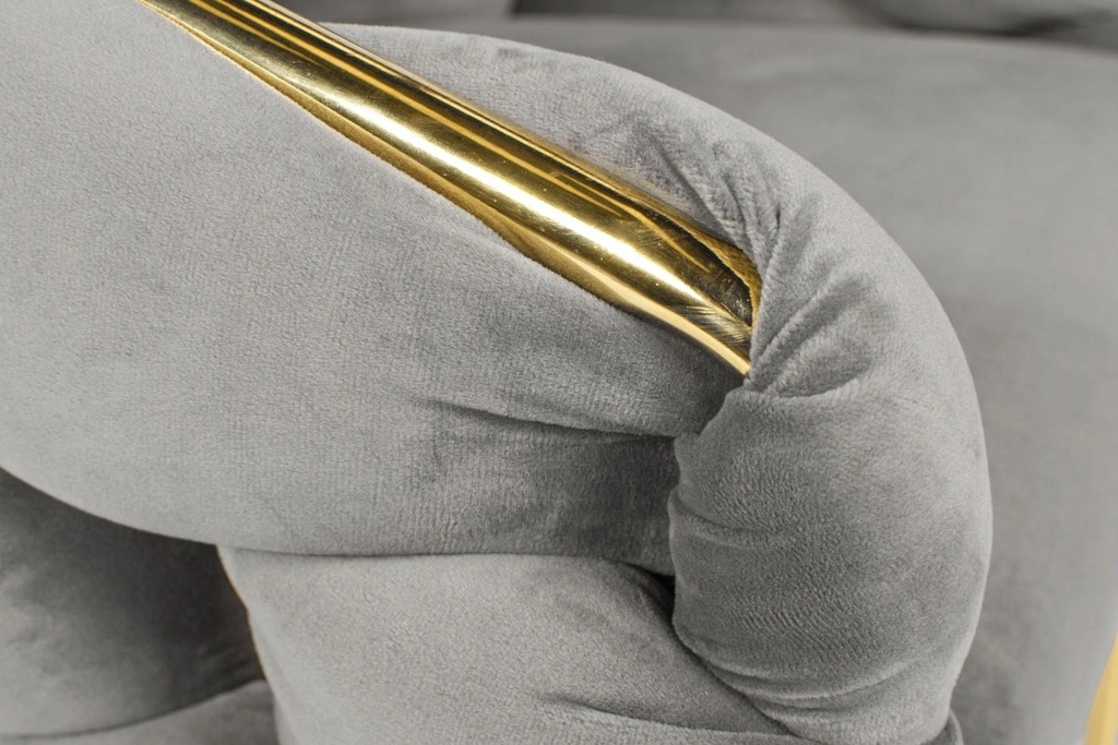Picioarele metalice suple și conturul auriu oferă un accent luxos interiorului și se asortează perfect cu catifeaua gri.