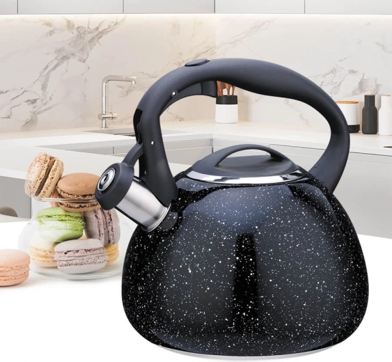 Capacul fluierător integrat semnalizează clar atingerea punctului de fierbere, astfel încât nu veți suprafierbe apa, iar utilizarea este maxim de sigură și confortabilă.