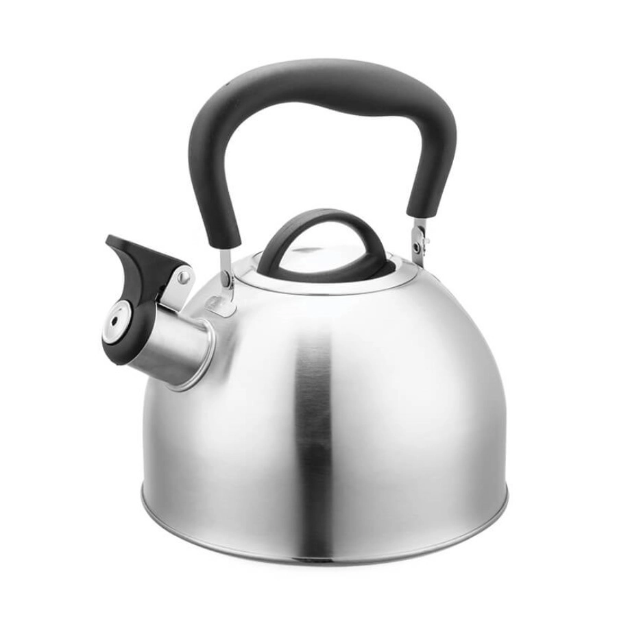 Ceainicul este echipat cu fluier, care vă anunță în siguranță atingerea punctului de fierbere, și cu mâner ergonomic din plastic cu izolație termică excelentă pentru turnare confortabilă și sigură. Baza largă asigură încălzire rapidă și uniformă și compatibilitate cu toate tipurile de plite, inclusiv cu inducție.