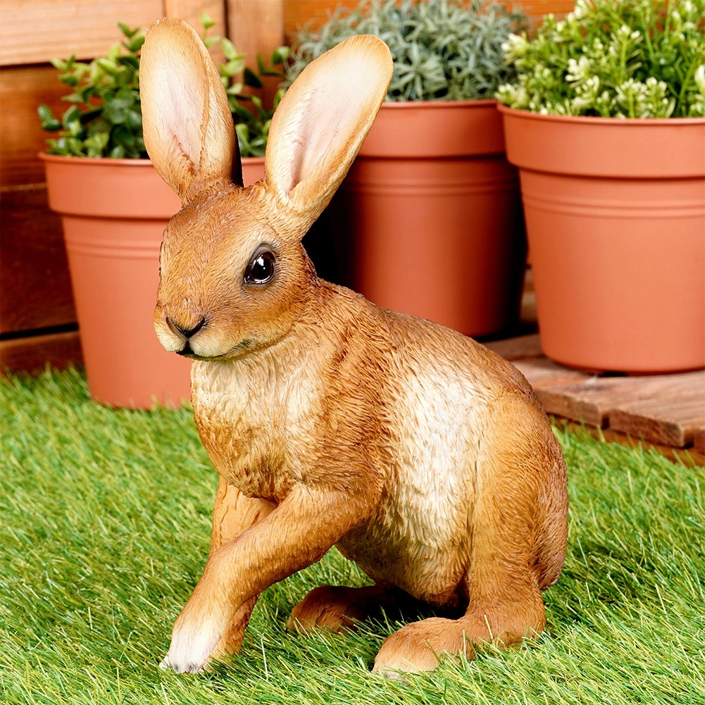 Această figurină decorativă de iepure este concepută pentru a se integra natural atât în verdele grădinii, cât și în spațiile exterioare moderne. Prelucrarea precisă și culorile vii imită fidel un animal real, devenind imediat punctul de atracție al spațiului tău.