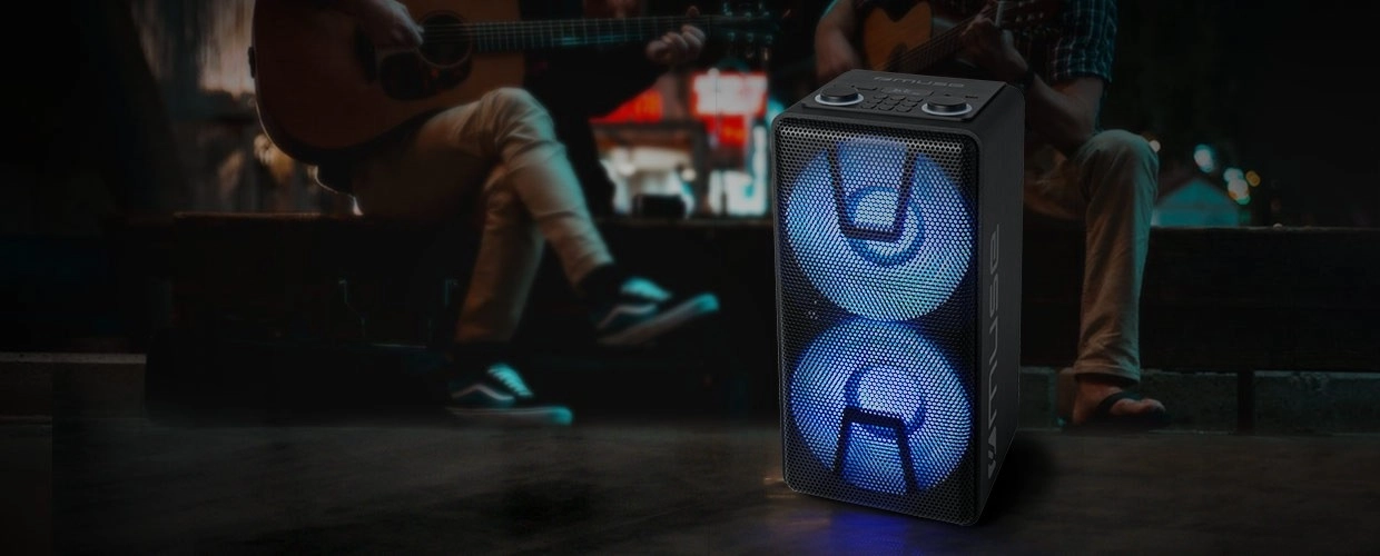 Datorită bateriei Li-ion de 1500 mAh / 7,4 V încorporate, te bucuri de muzică și fără priză. Pentru reprezentații live sau karaoke, ai la dispoziție intrare MIC și intrare pentru chitară, iar AUX in de 3,5 mm completează conectarea clasică prin cablu. Funcția de împerechere stereo permite conectarea a două boxe compatibile pentru a crea o scenă sonoră mai amplă și mai spațioasă.