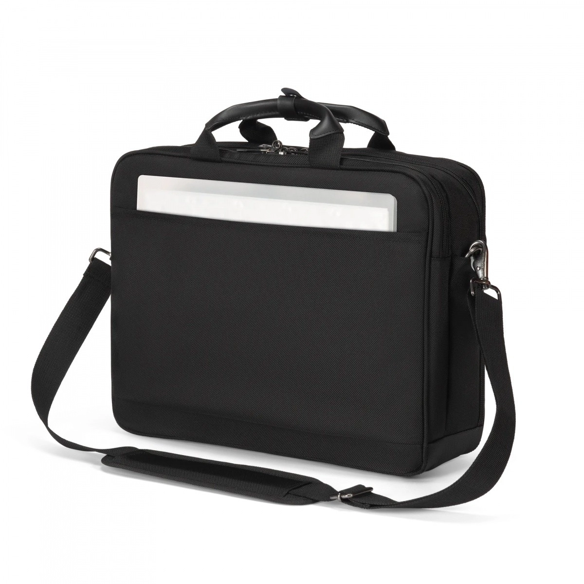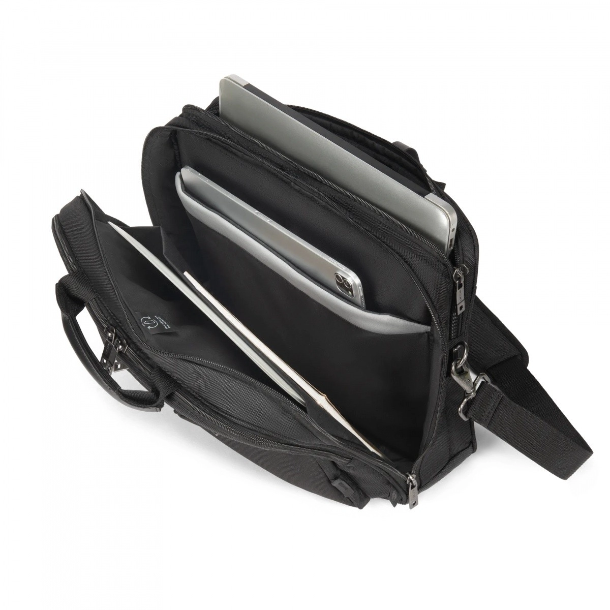 Partea exterioară și interioară a genții este realizată din materiale reciclate de înaltă calitate rPET, care dau o a doua viață sticlelor din plastic, fără a compromite rezistența și aspectul premium. Funcții precum DICOTA Cushion Technology pentru absorbția șocurilor, ecranarea RFID împotriva citirii neautorizate și buzunarul dedicat pentru localizator duc protecția și monitorizarea echipamentului la un nou nivel.