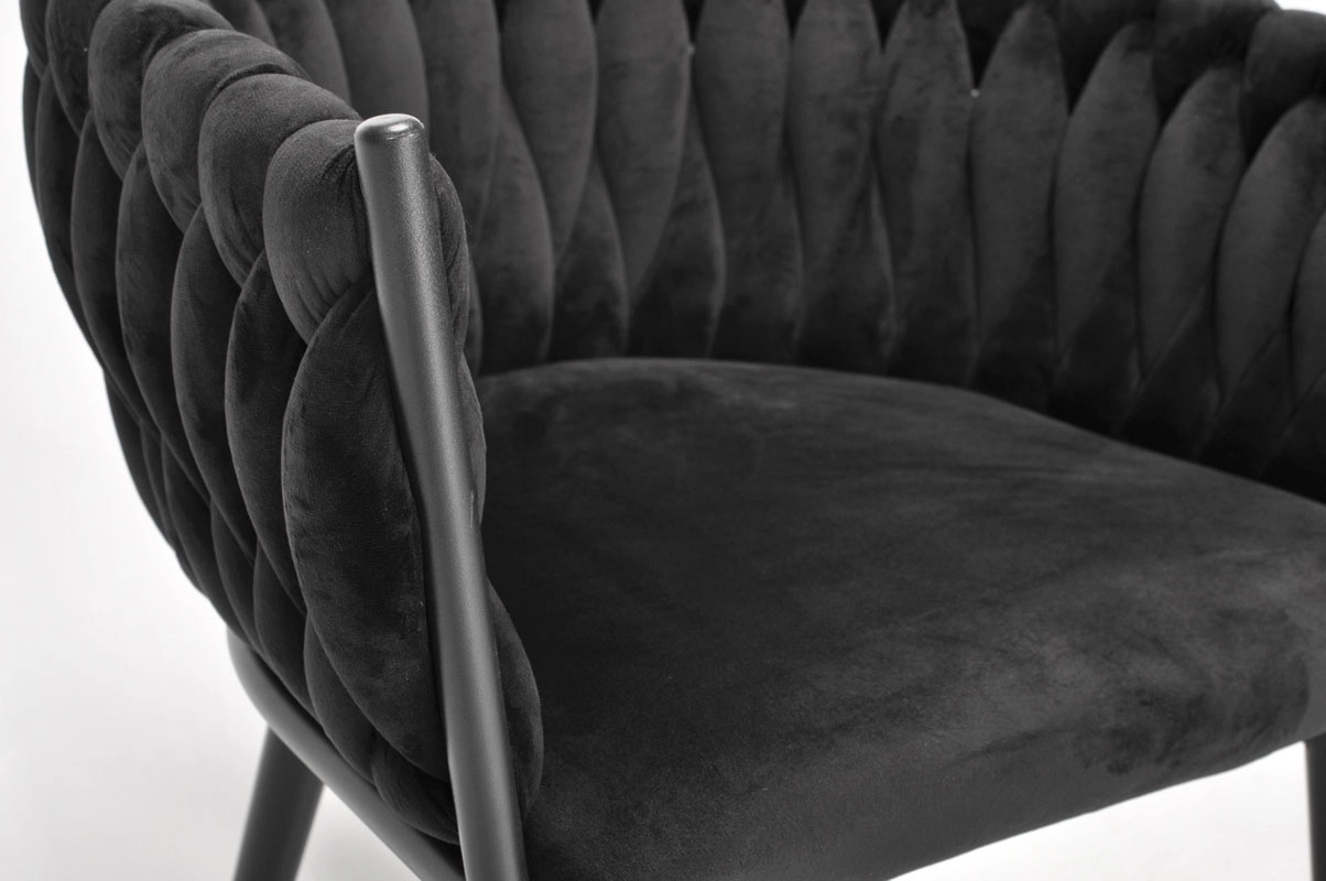 Fotoliul ROSA este conceput pentru interioare în care stilul se întâlnește cu confortul. Negrul intens, cu luciu catifelat discret, este atemporal și ușor de integrat în amenajări moderne, minimaliste sau glam. Spătarul împletit este un element de design pronunțat care transformă orice încăpere într-un spațiu sofisticat.