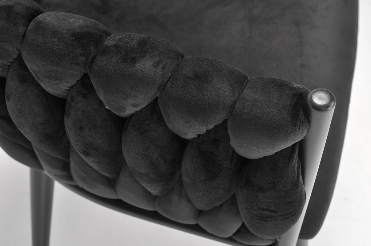 Partea din spate decorativ împletită, realizată din catifea fină, oferă fotoliului ROSA un aspect unic și un aer premium care atrage privirea din primul moment.