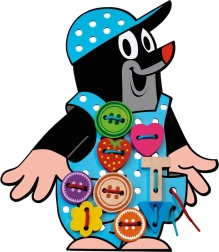 Această jucărie de brodat unică, sub forma legendarului personaj Krtek, oferă distracție și învață abilități importante. Copiii au posibilitatea de a crea propriile modele folosind piese de lemn de diferite forme și imprimeuri care se fixează pe un șablon din carton.