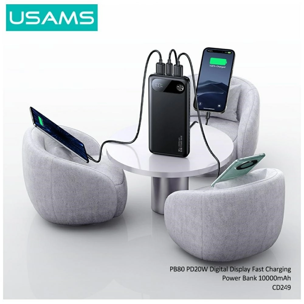 Cauți o power bank ușoară și performantă, care să-ți mențină dispozitivele în funcțiune toată ziua? USAMS PB80 aduce o capacitate de 10 000 mAh și suport Power Delivery 20 W pentru reîncărcare fulger a telefoanelor și accesoriilor compatibile. Datorită USB‑C și 2× USB‑A poți încărca ușor mai multe dispozitive simultan – de la smartphone până la căști și ceasuri inteligente.