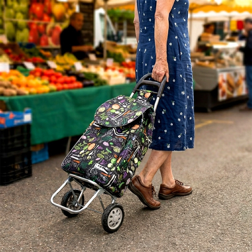 Gata cu purtatul pungilor grele în mână. Acest cărucior de cumpărături, cu un volum de 30 de litri, este ideal pentru cumpărăturile zilnice și plimbările mai lungi. Rama metalică stabilă și roțile mari asigură o rulare lină pe trotuare și pavaj, în timp ce mânerul ergonomic oferă o prindere sigură.