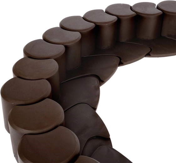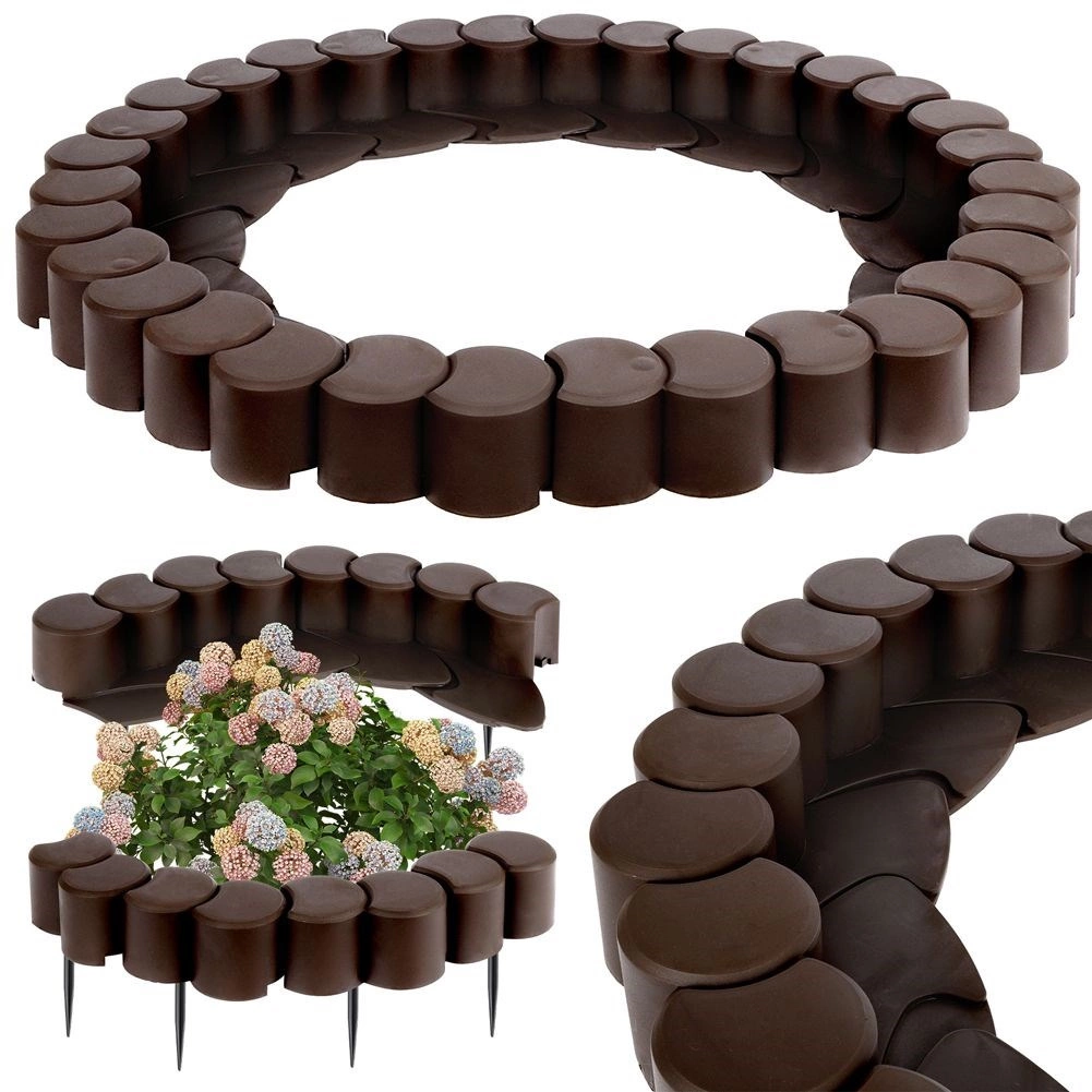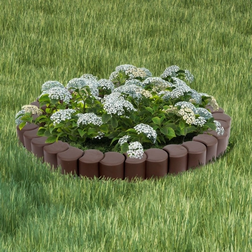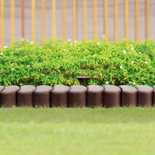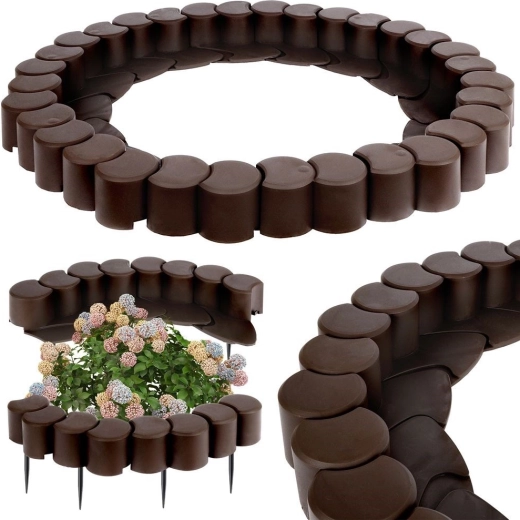 Palisadă decorativă de grădină, de culoare maro, cu lungimea totală de 4,1 m, formată din 32 de module, ideală pentru separarea gazonului și a straturilor de flori. Oferă montaj ușor, modelare flexibilă în arcuri și cercuri și rezistență la îngheț, radiații UV și ploaie. Practicul rampeu pentru mașina de tuns iarba ușurează întreținerea marginilor, iar canalele integrate pentru cablu sau furtun maschează instalațiile.