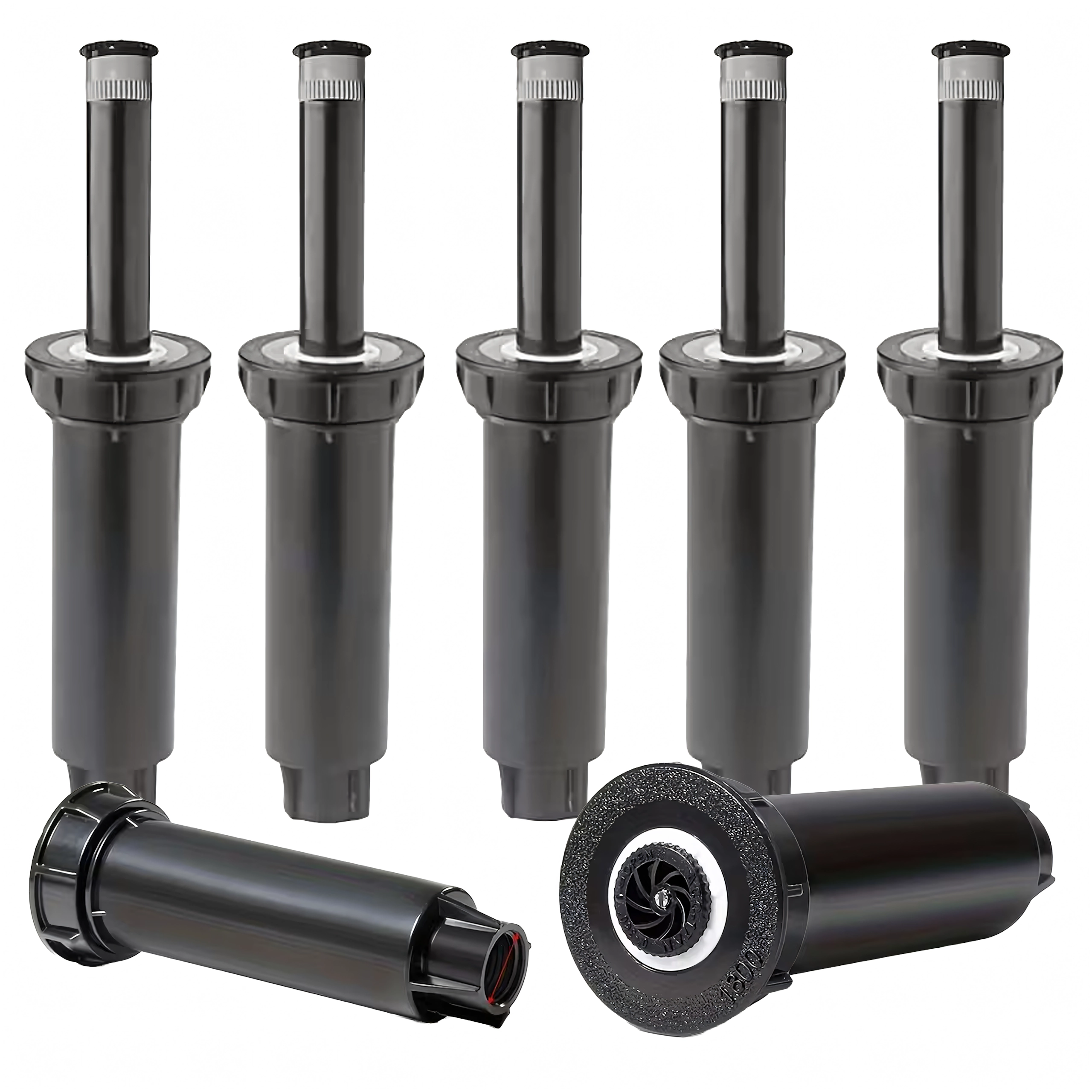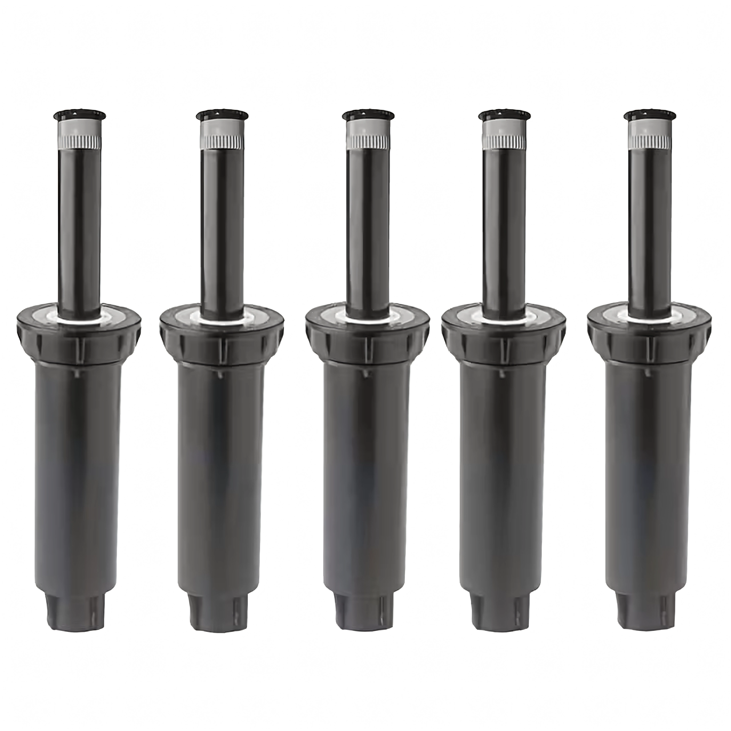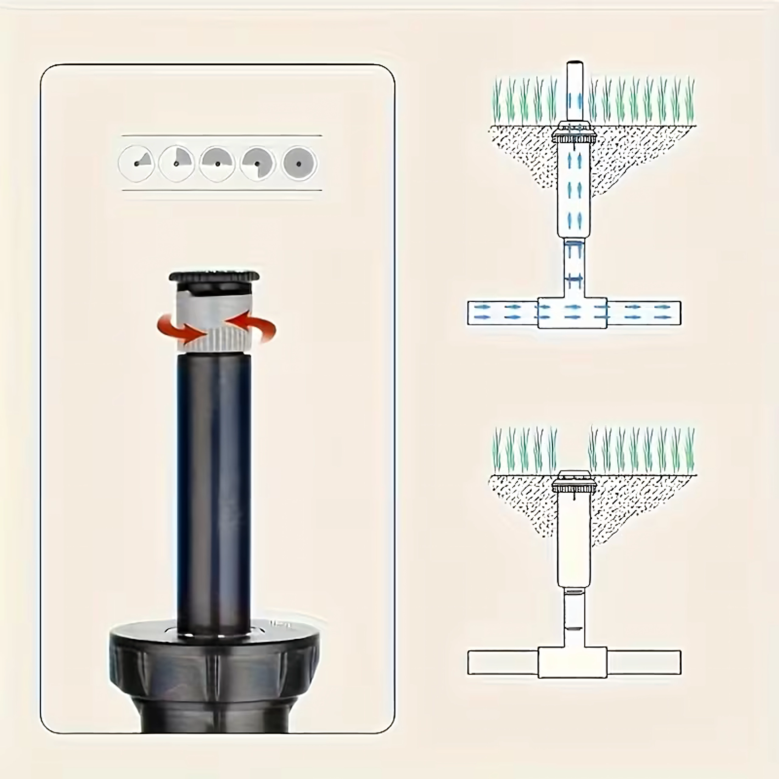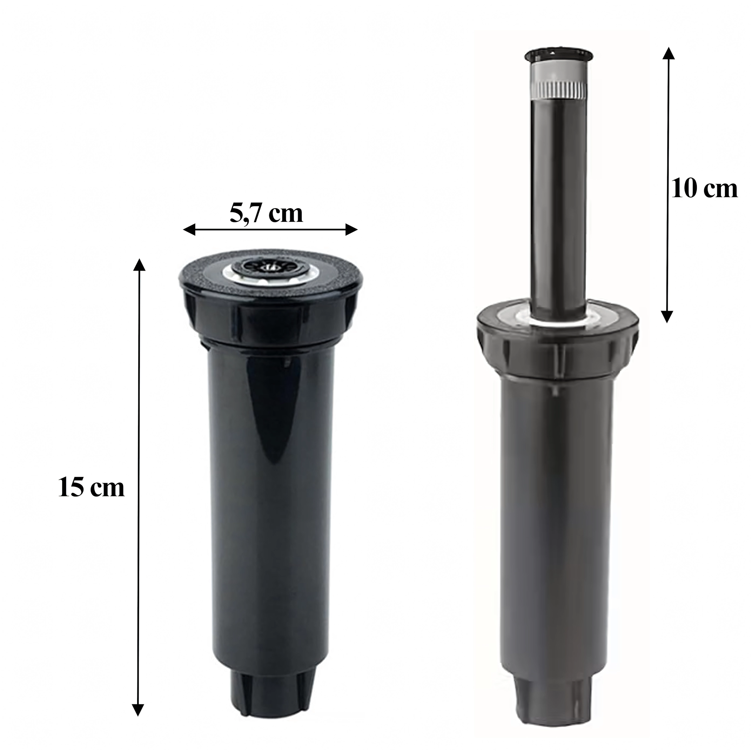 Corpul aspersorului se ridică sub presiunea apei și, după udare, se retrage în sol. Minimizează riscul de deteriorare și nu incomodează la tuns.