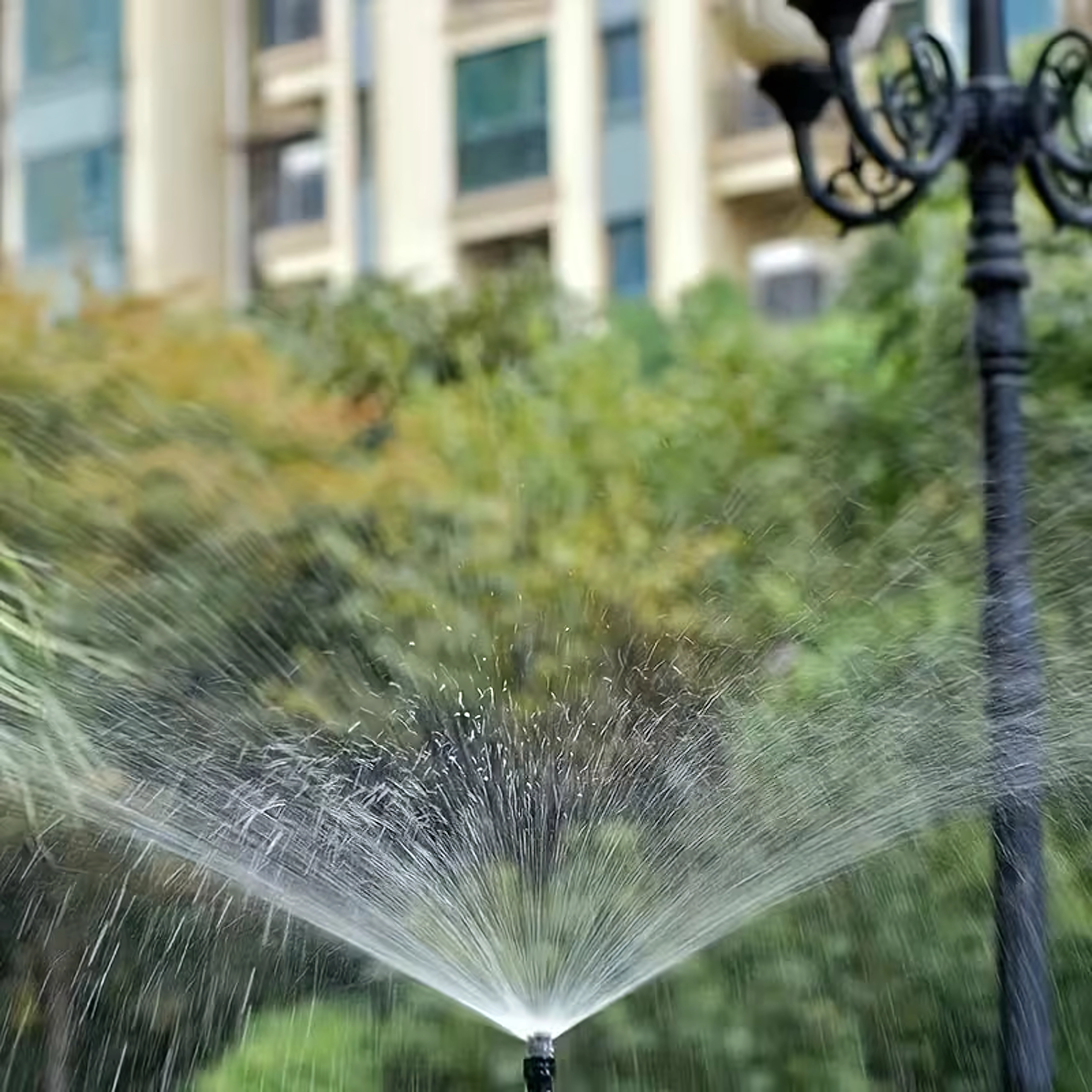 Stropirea circulară completă asigură irigare uniformă, fără zone uscate sau supraudare – ideală pentru gazon și straturi de flori.