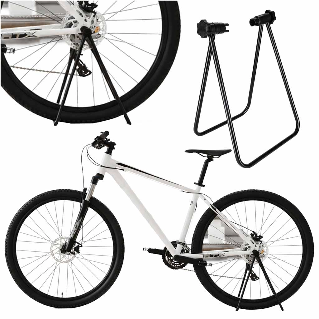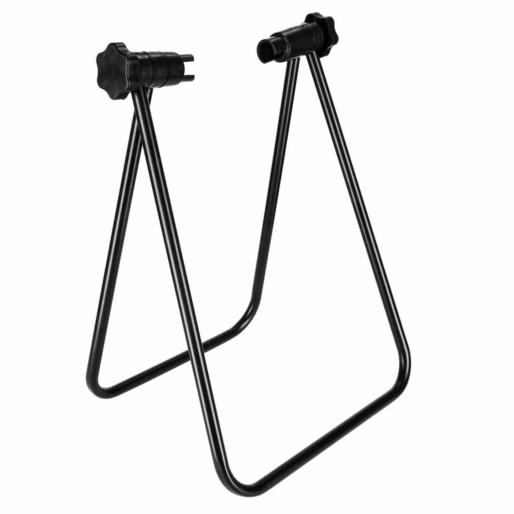 Baza triunghiulară și punctele de sprijin din cauciuc mențin bicicleta ferm în poziție verticală pentru reglaje precise ale frânelor și transmisiei.