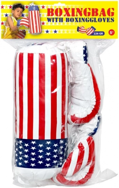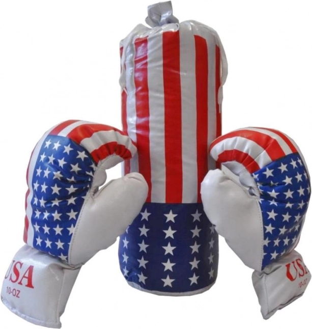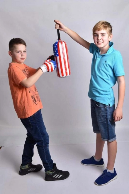 Mănușile au dimensiunea exactă pentru mâinile mici ale copiilor. Sacul și mănușile cu motive ale steagului american vor încânta orice mic luptător. Jucăria este realizată din material moale, așa că nu trebuie să vă faceți griji cu privire la posibilele accidente. Dezvoltă dexteritatea și imaginația copiilor și susține mișcarea sănătoasă a acestora.