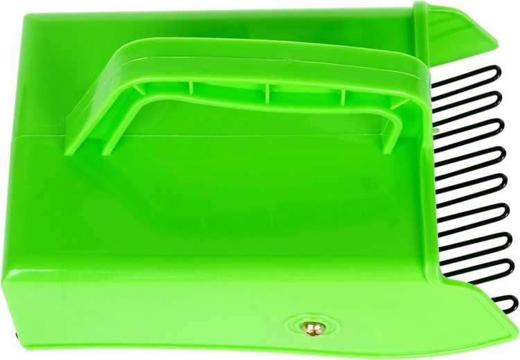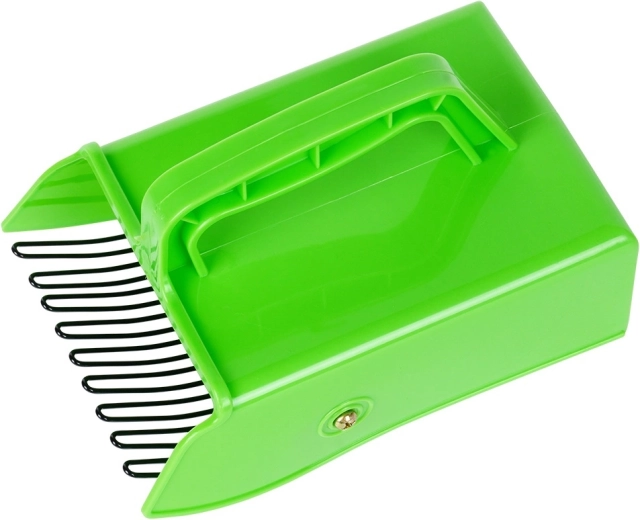 Cu acest culegător ușor și rezistent veți recolta afine, coacăze, aronie și frăguțe mai rapid și mai curat. Dinții metalici pieptănă delicat arbuștii, fructele cad direct în rezervorul interior, iar frunzele sau rămurelele rămân afară. Mânerul ergonomic se potrivește excelent în mână și facilitează manevrarea chiar și la sesiuni mai lungi de cules.