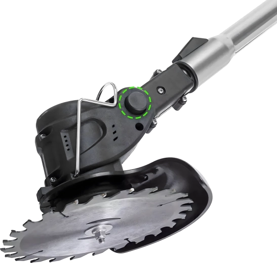 Capul rotativ și reglabil pe unghi, cu apărătoare, permite margini curate de-a lungul bordurilor și straturilor, precum și tăiere sigură în zone greu accesibile.