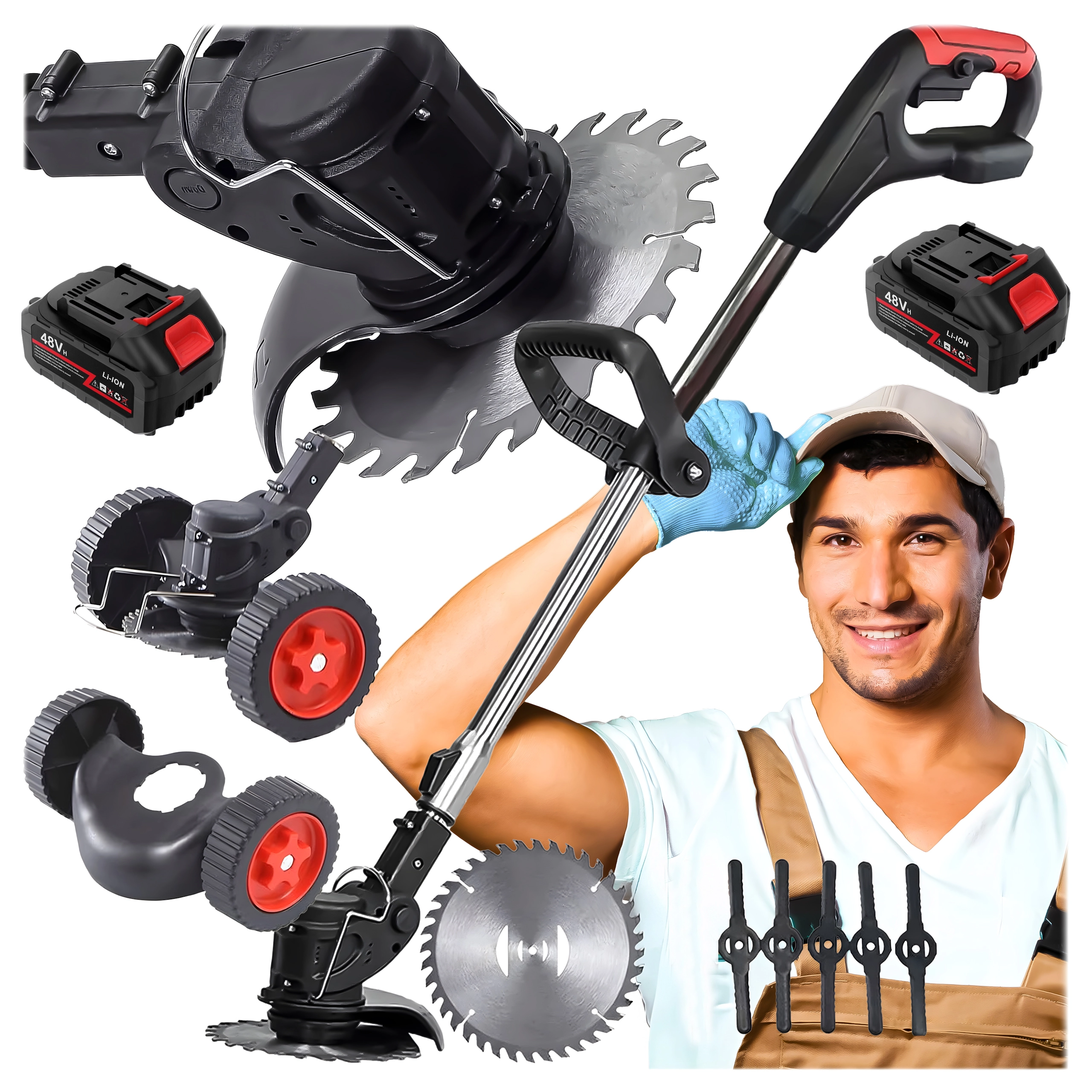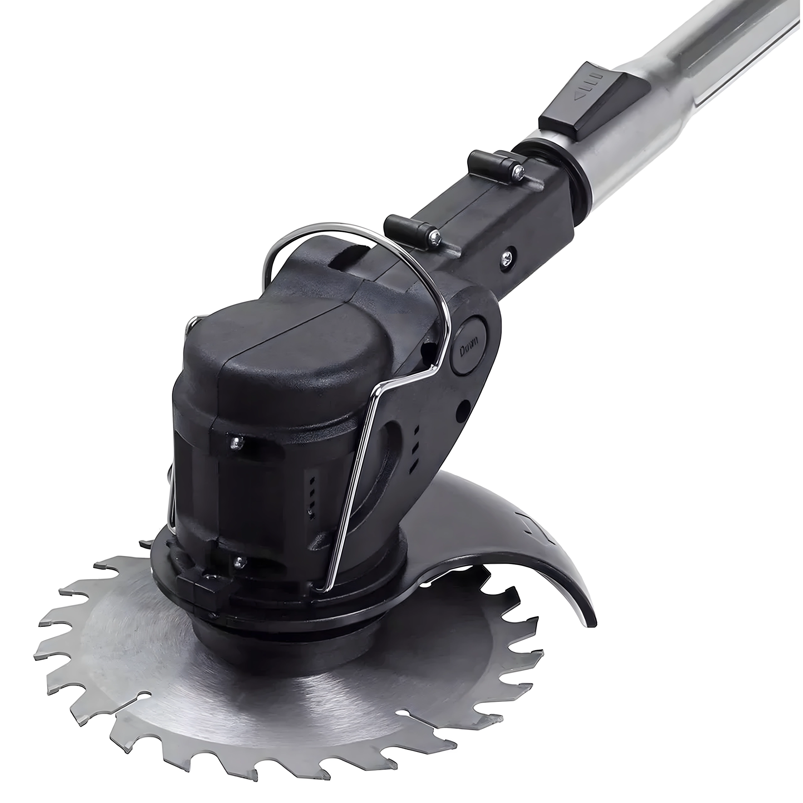 Datorită accesoriilor interschimbabile – de la lamă pentru vegetație mai deasă până la cuțite din plastic pentru iarbă fină – unealta se adaptează sarcinii curente. Roțile de ghidare ușurează lucrul de-a lungul aleilor și bordurilor pentru margini drepte și curate. Capul motor cu aspect brushless și apărătoare sporește siguranța și eficiența în utilizare.